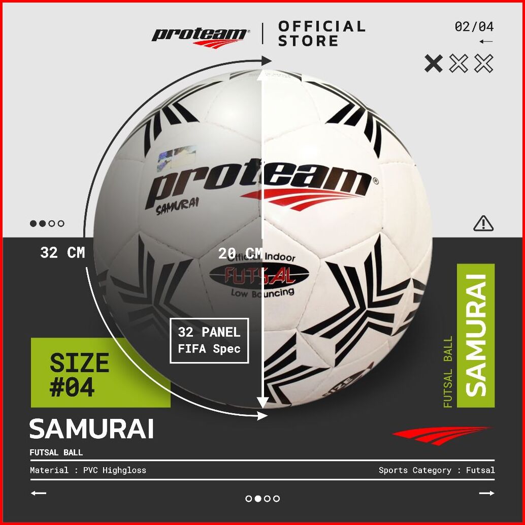 Proteam Bola Futsal Samurai Pvc Hitam 32 Panel