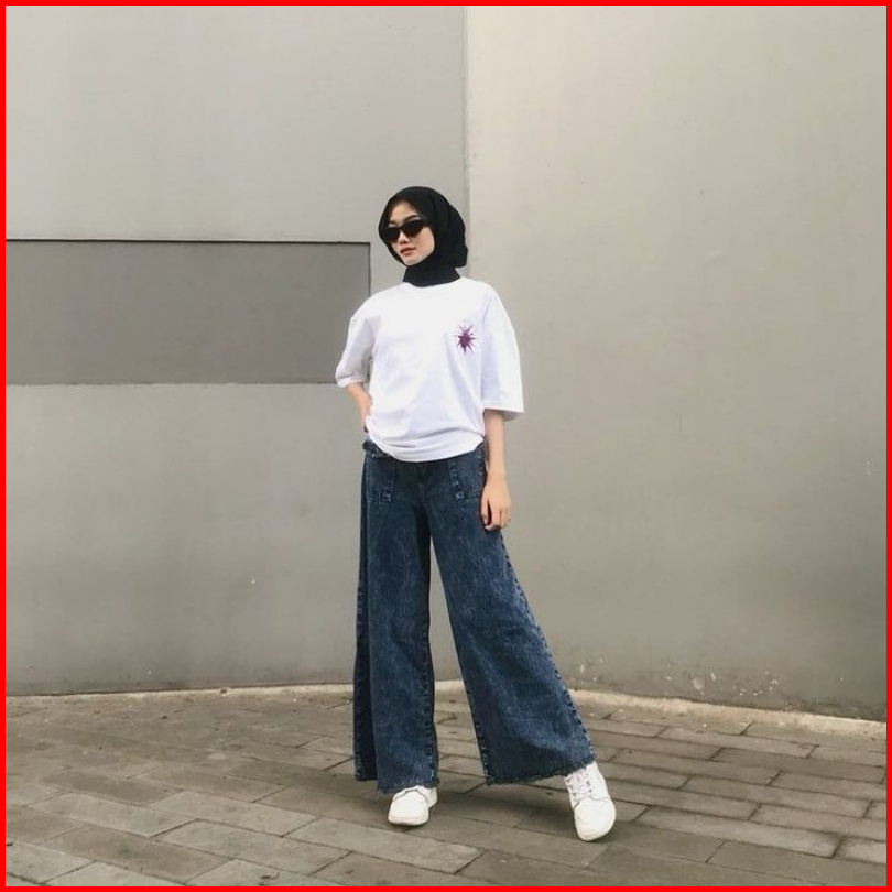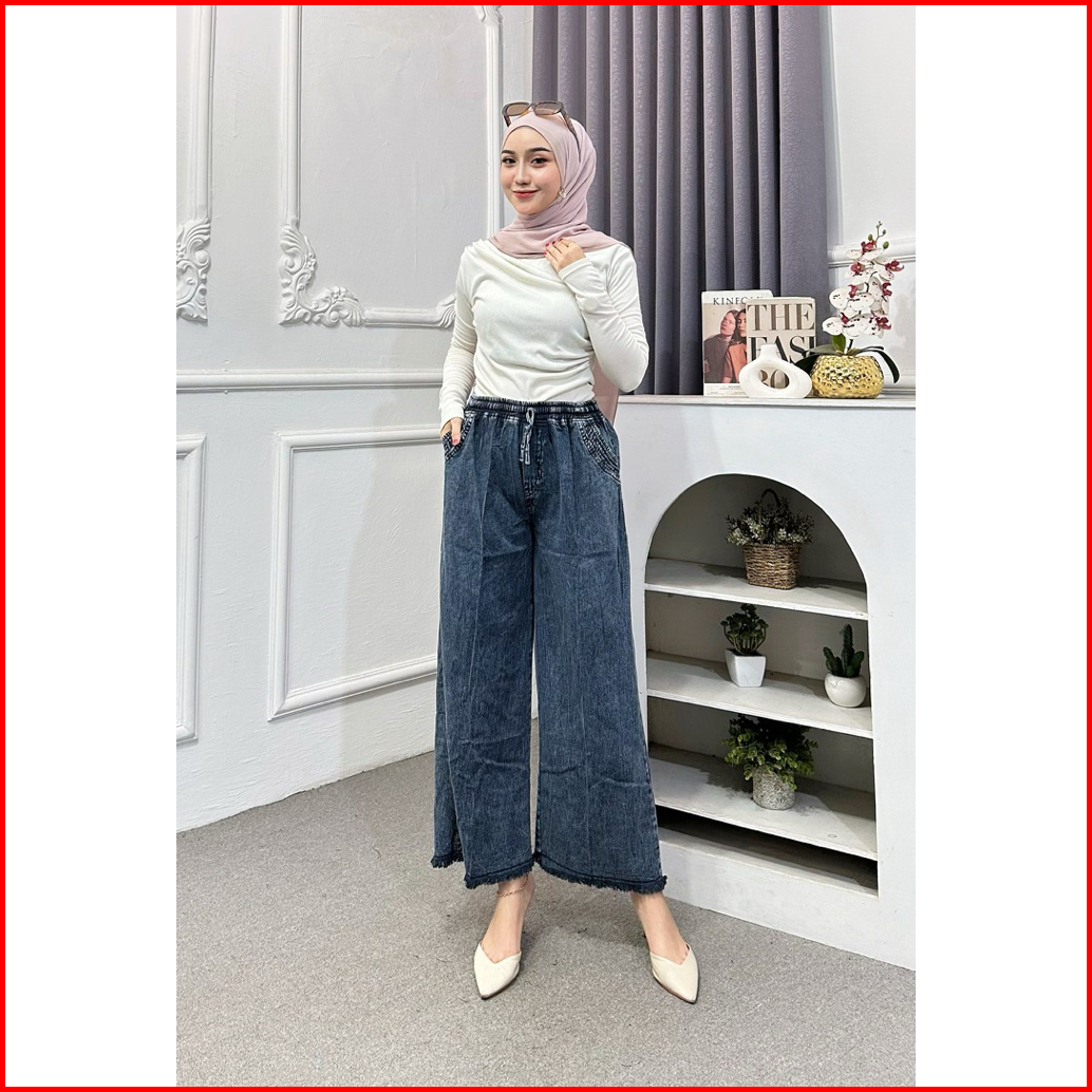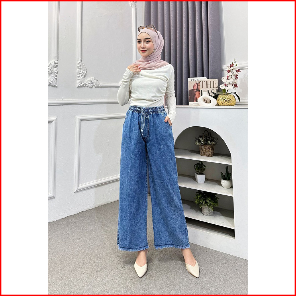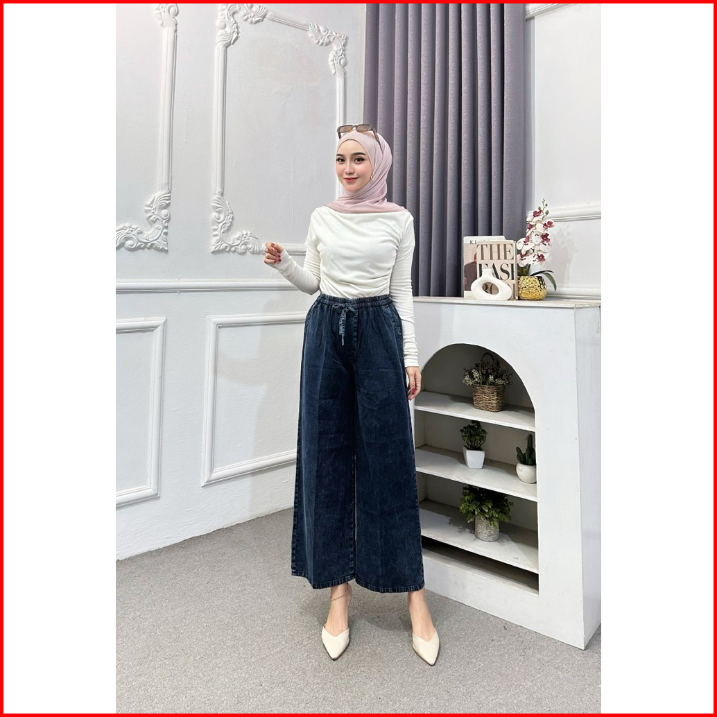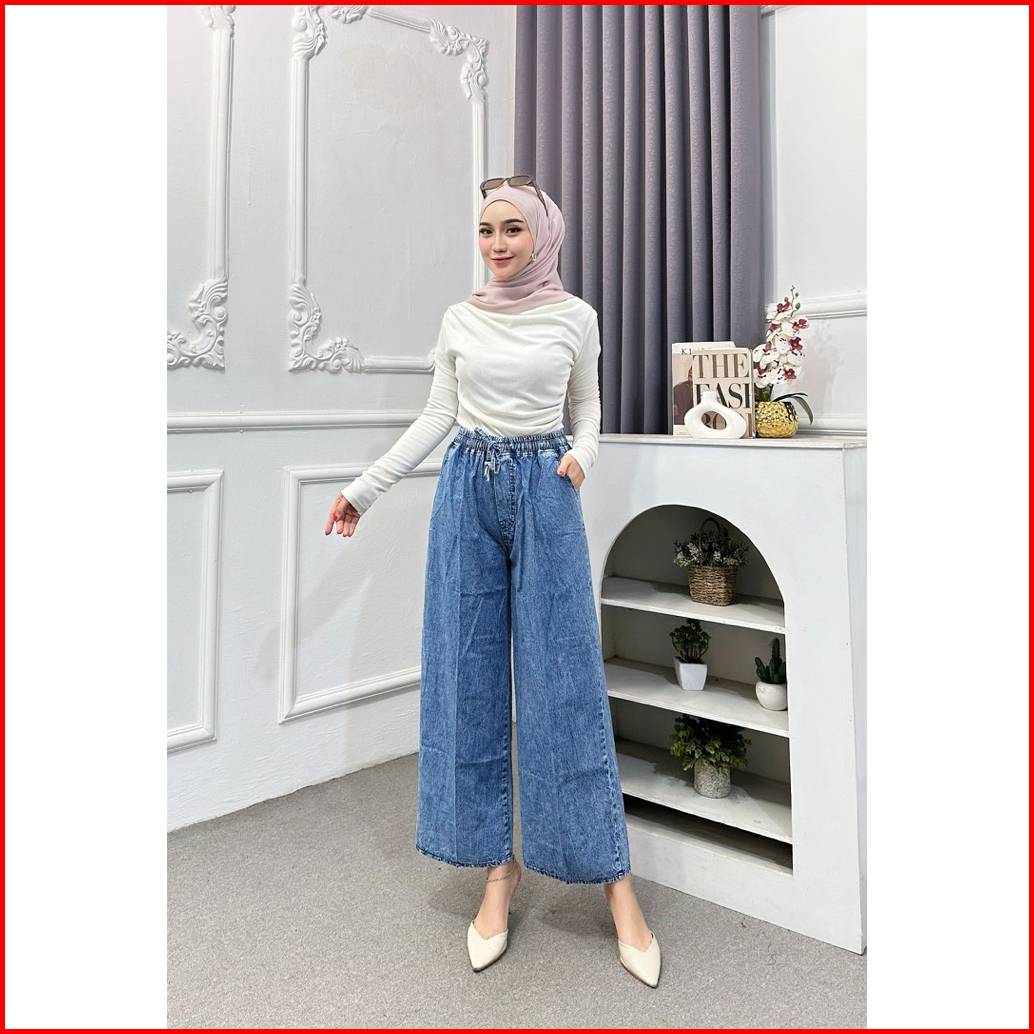 Jeans Kulot Masa Kini - Jeans Kulot Pinggang Karet - Jeans Kulot Ukuran Standar Dan Jumbo - Tali Depan - Denim Kulot