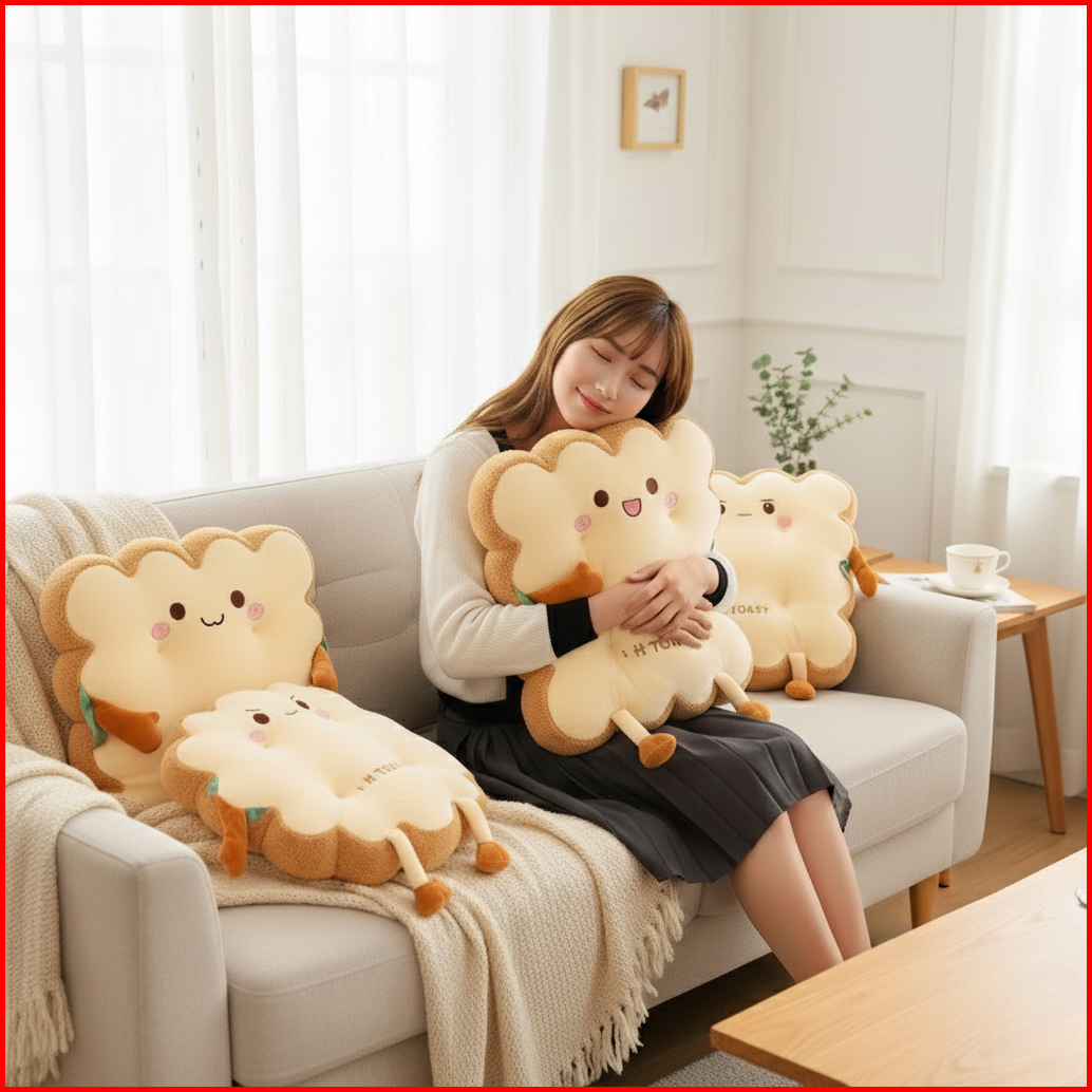 Bantal Duduk Sandaran Roti Lucu Plush Cushion Toast Pillow Sofa Imut Bahan Halus Lembut