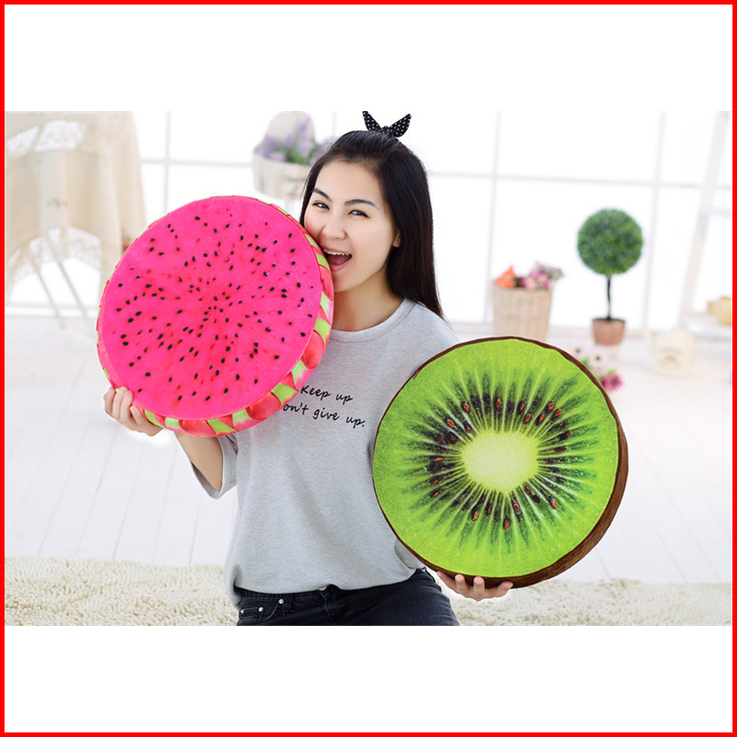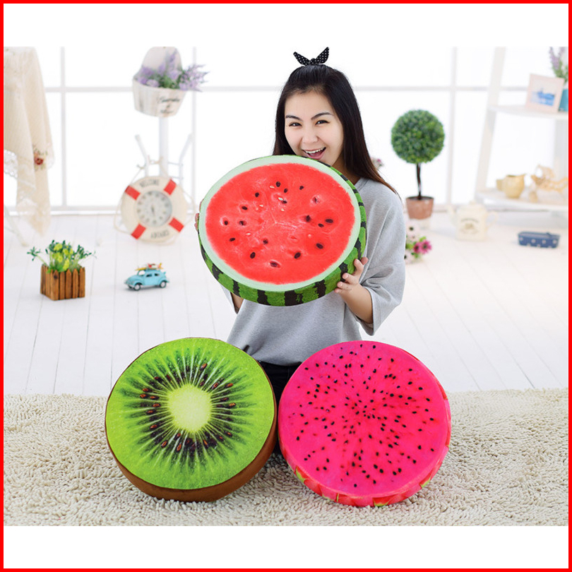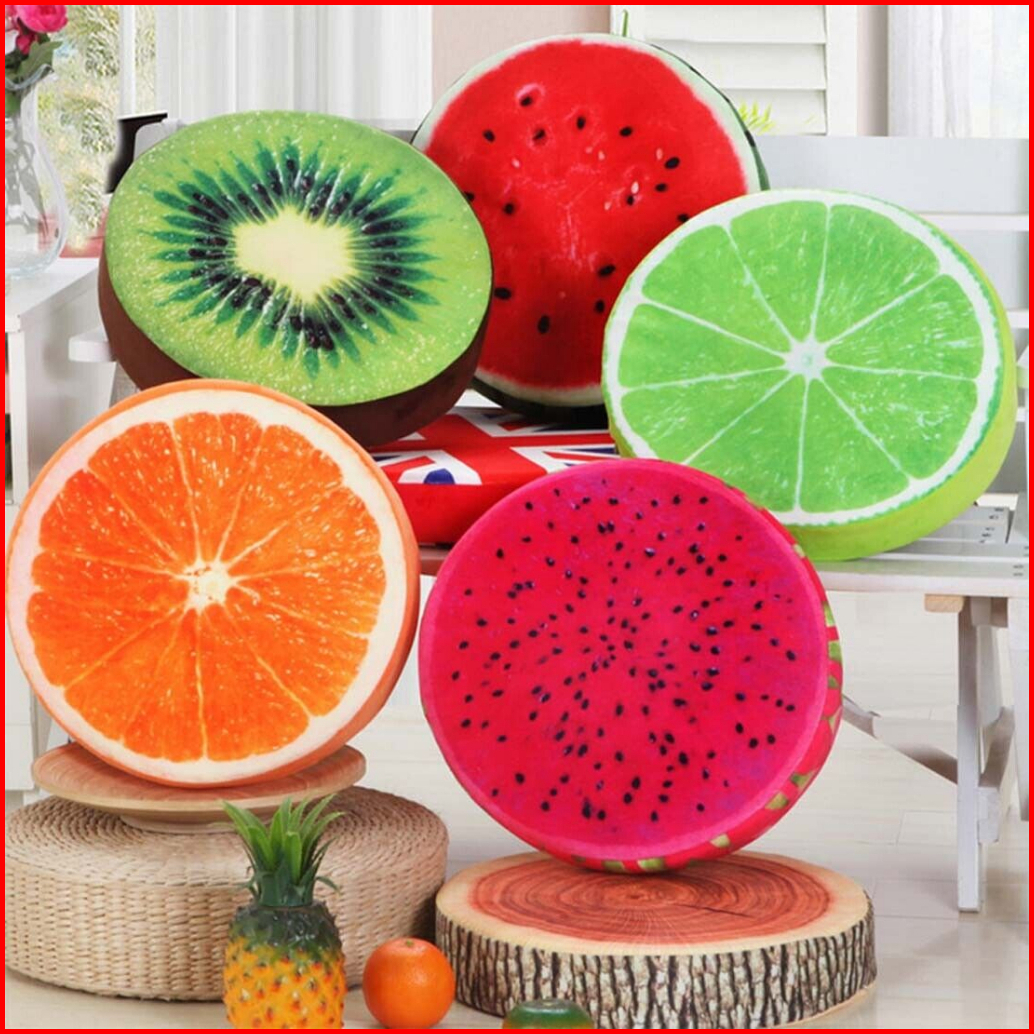 Bantal Sofa Bulat Motif Buah Strawberry Semangka Jeruk Kiwi Alpukat Bahan Halus Lembut 40cm