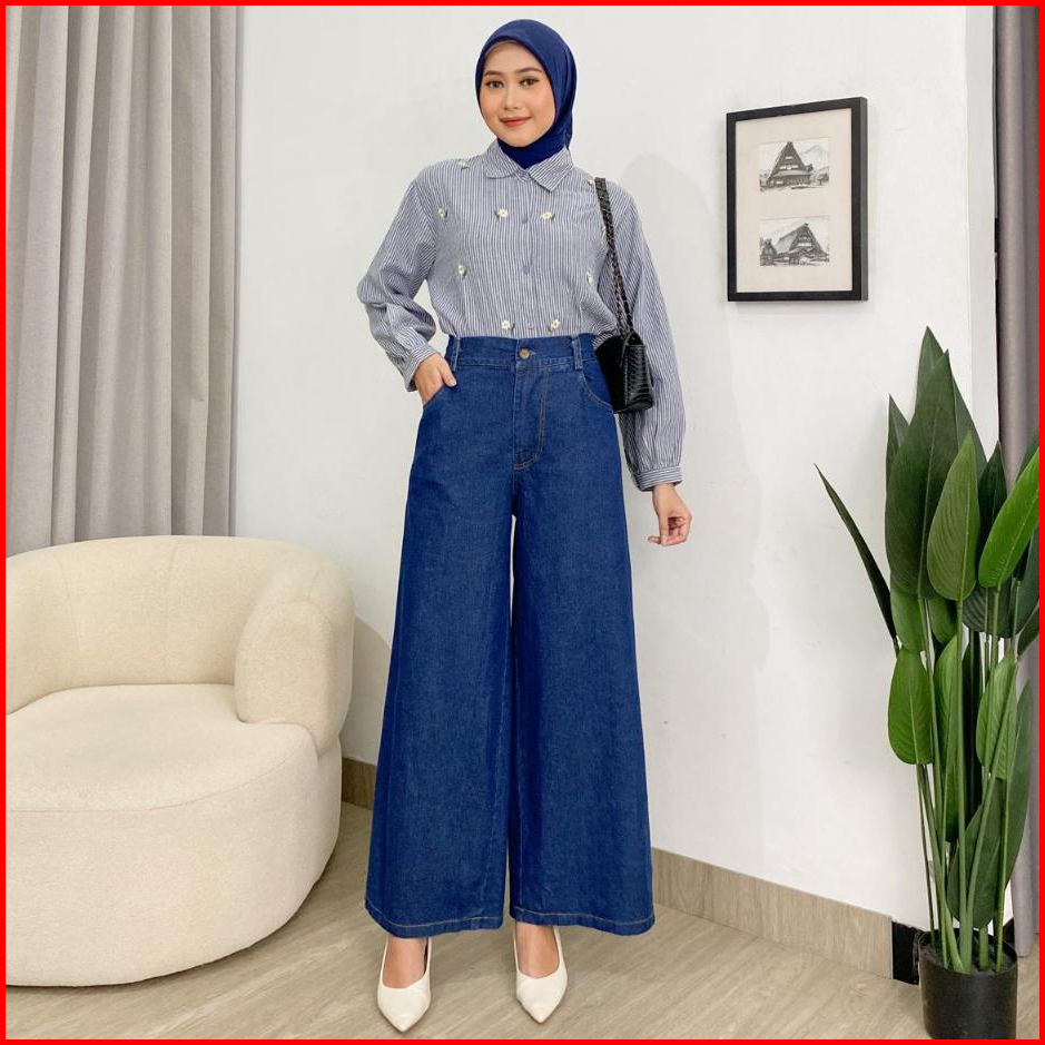 Dostifashion Aleta Jeans Celana Kulot Jeans Wanita Premium Celana Kulot Lurus Formal