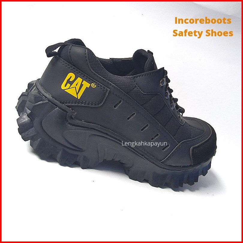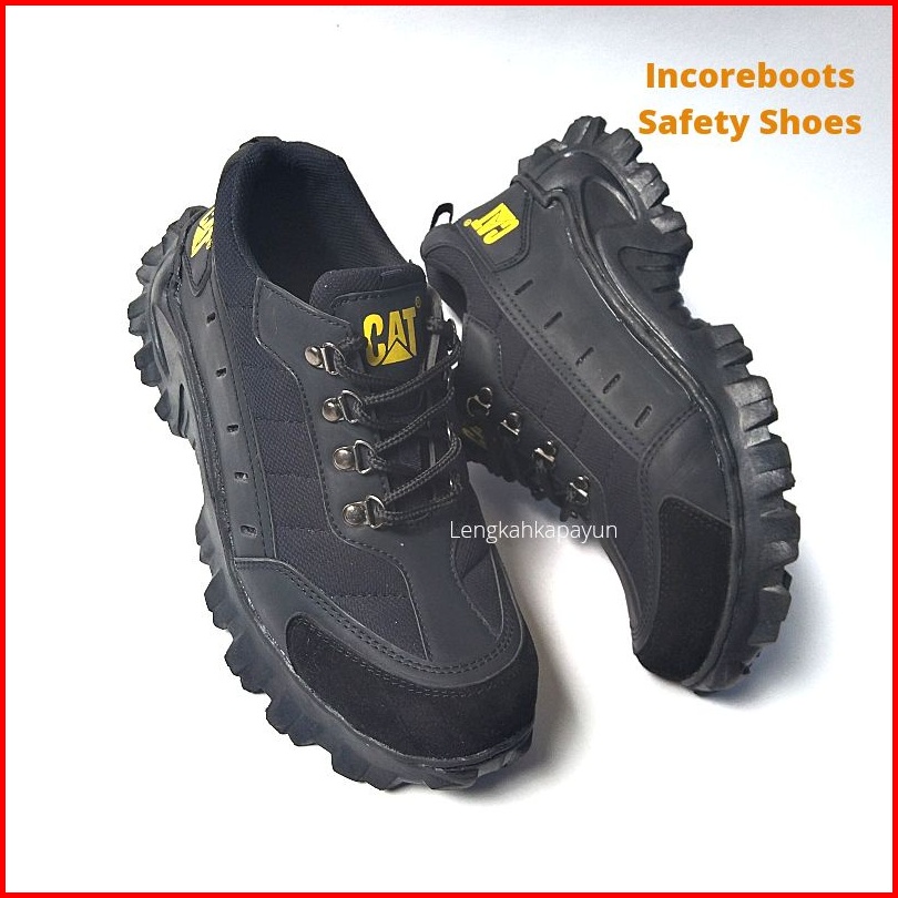 Sepatu Savety Cowok Ujung Besi Hitam Kerja Pria Tali Pendek