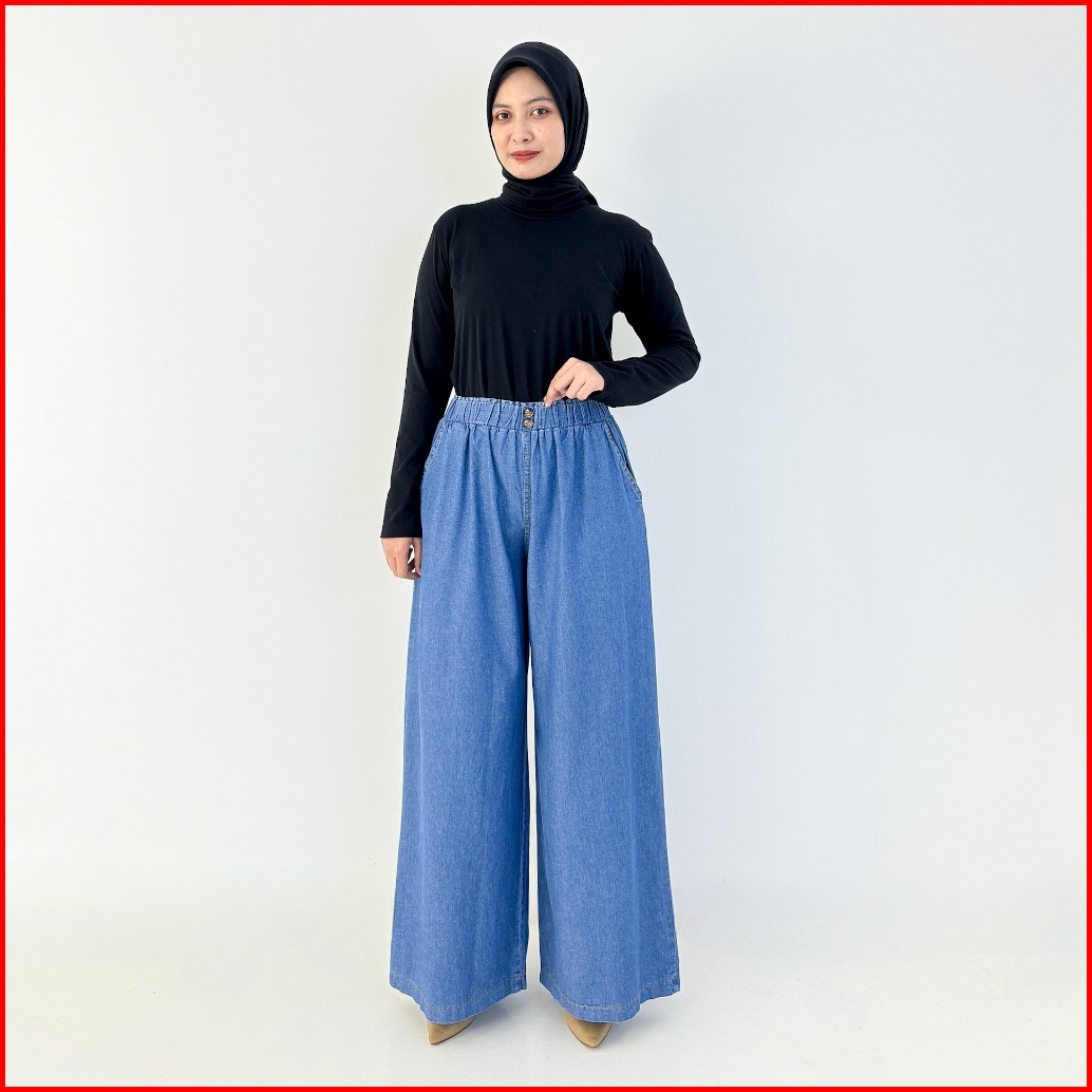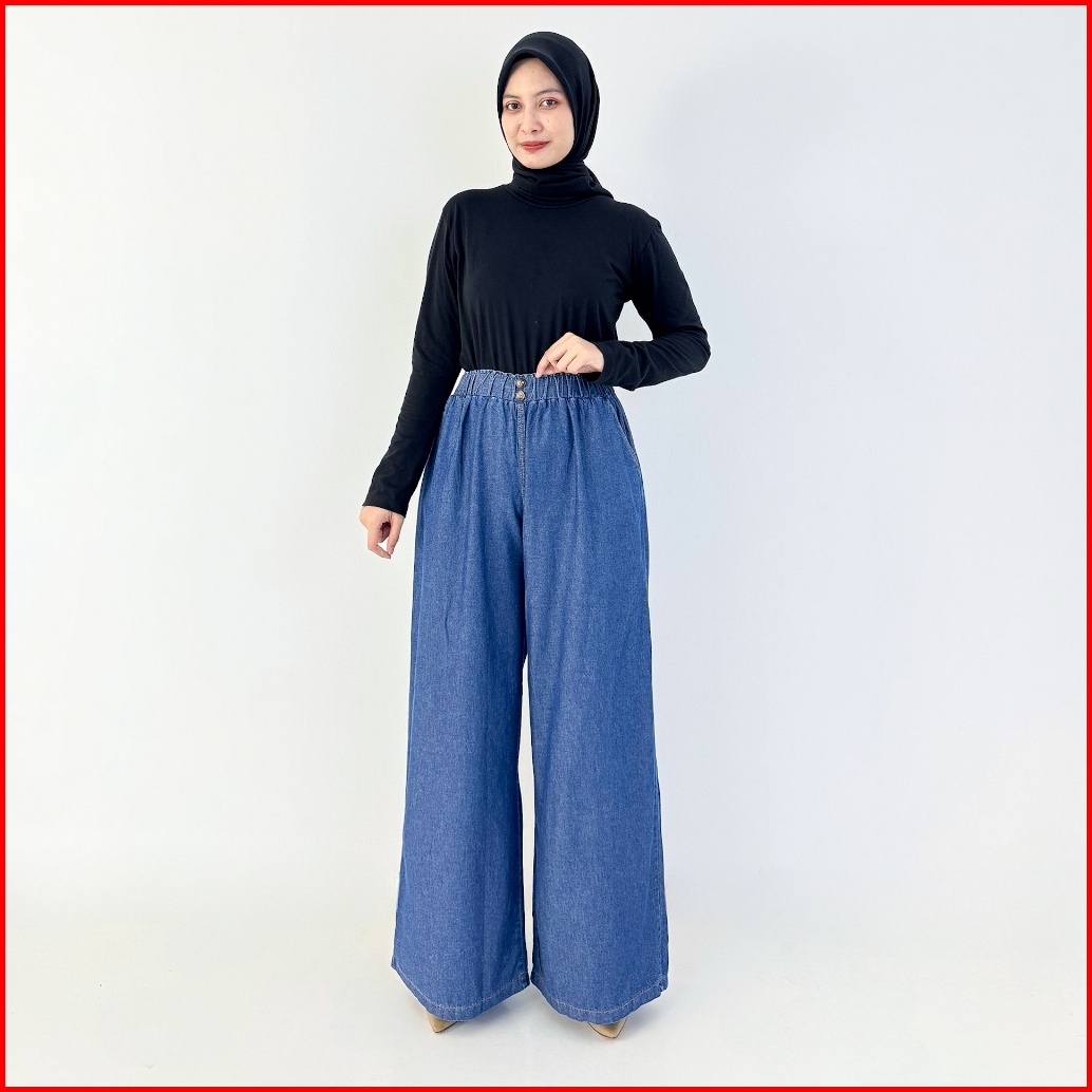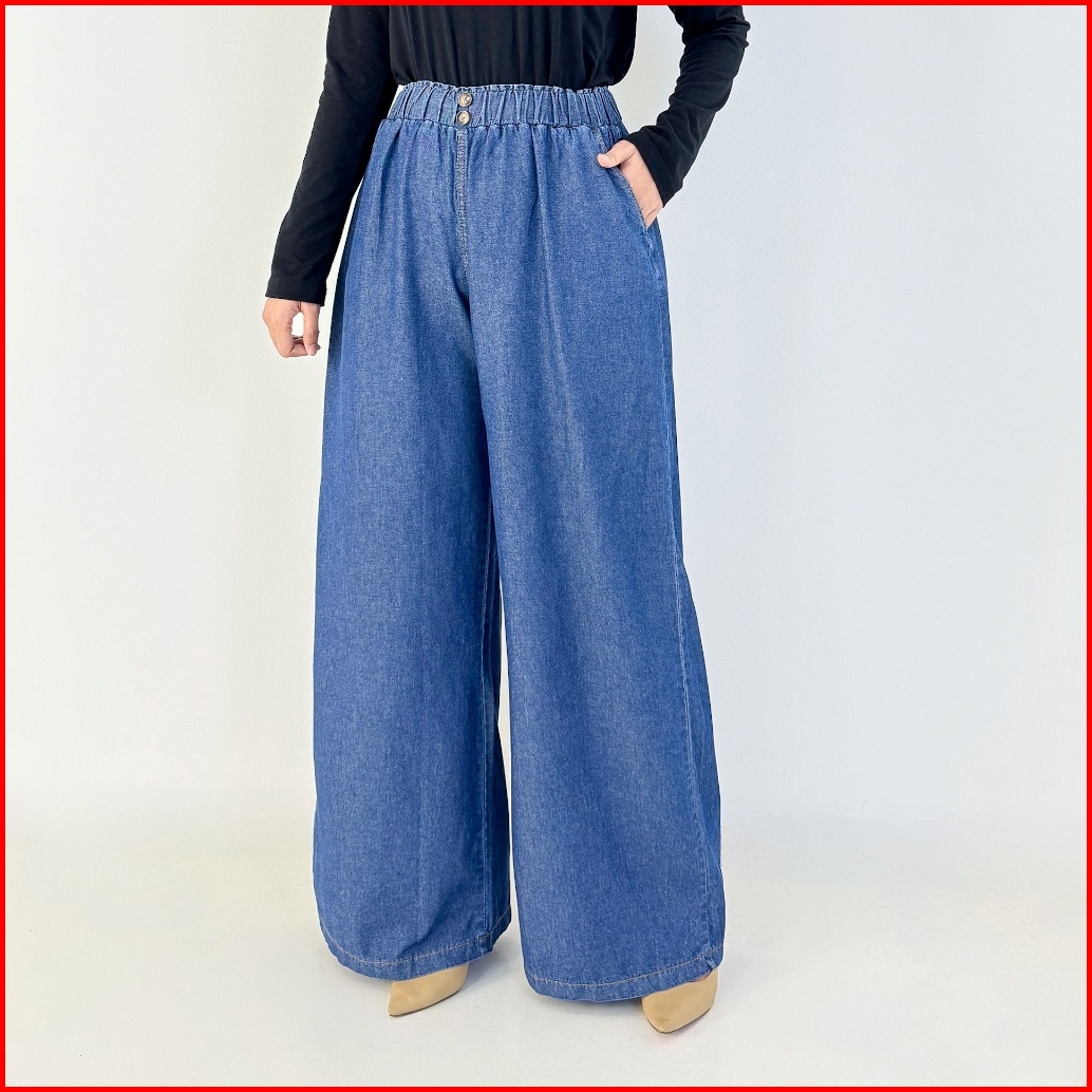 Lezahrasignature Pallazo Wella Haighwaist Kulot Soft Jeans Pinggang Karet Fit Xl-xxl Panjang 104-106cm Denim Non Stretch