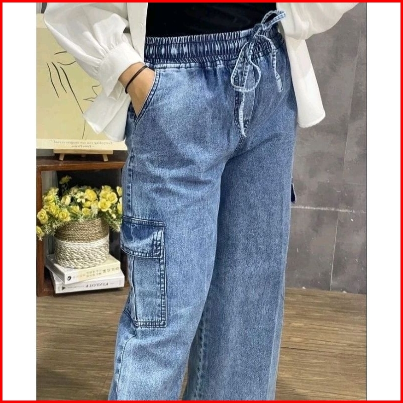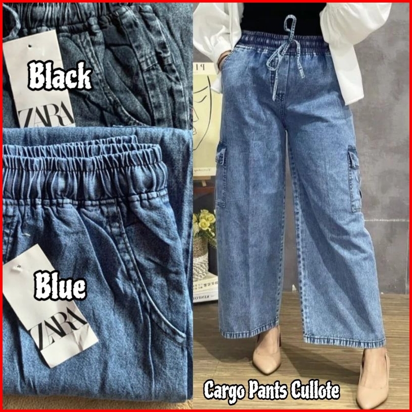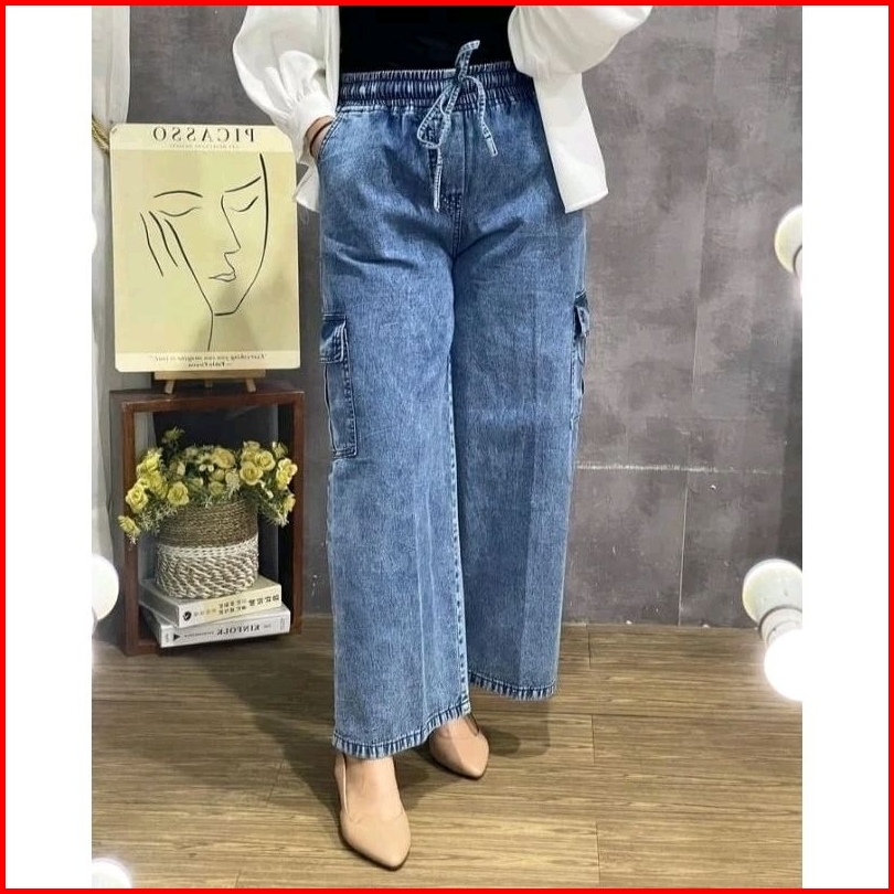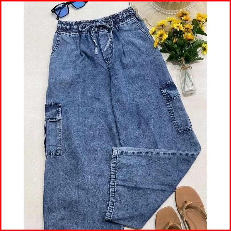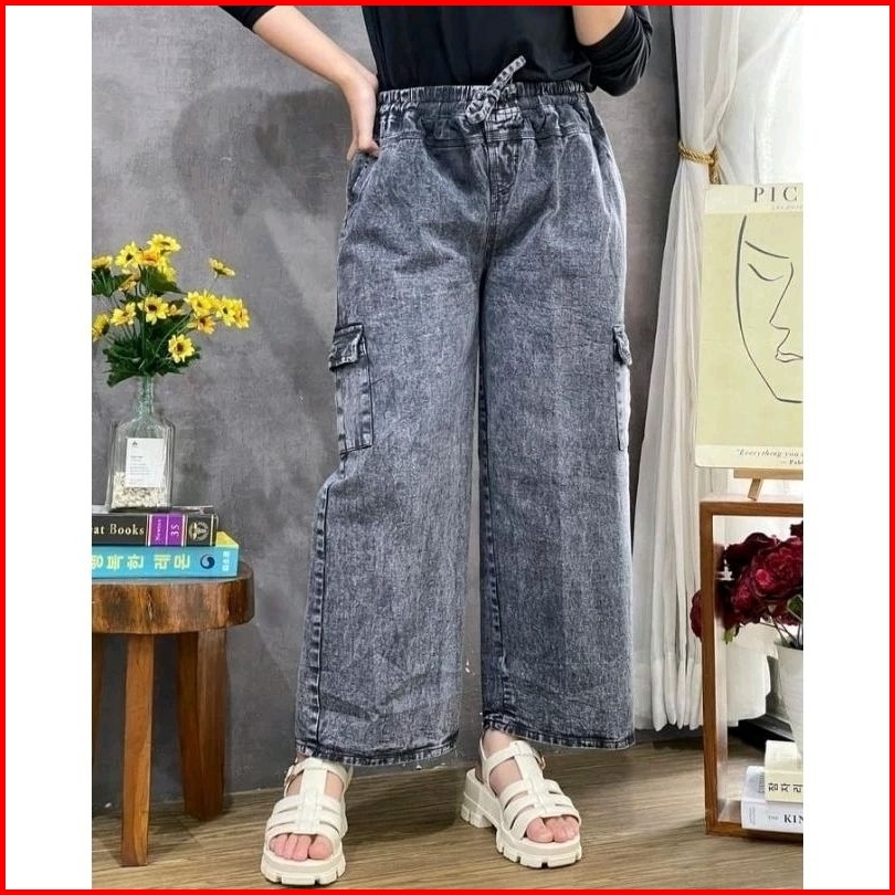 Celana Kulot Cargo Jeans Denim Wanita Premium Terbaru Kekinian Celana Jeans Wanita Kulot Kargo Wanita