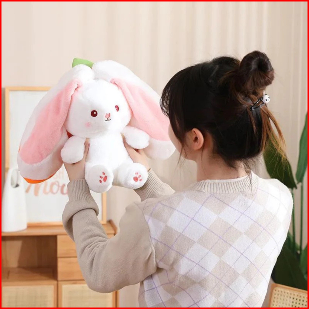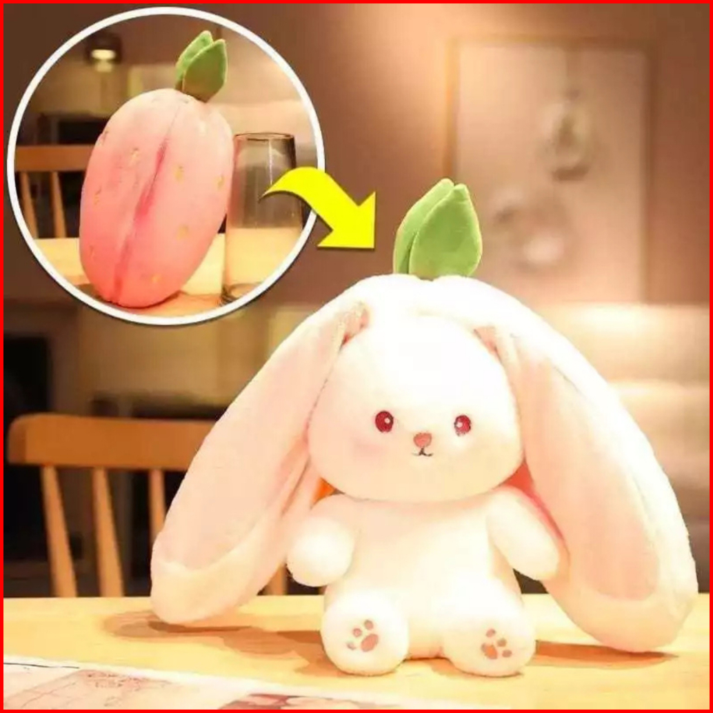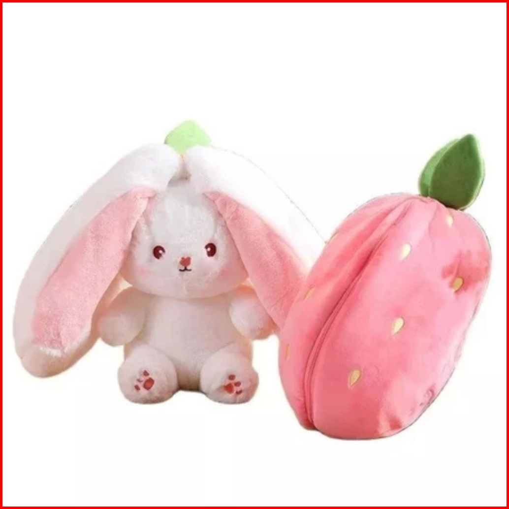 30cm Boneka Mainan Kelinci Strawberry Wortel Flip Resersible Lucu Dan Lembut Gemoy Untuk Cewek