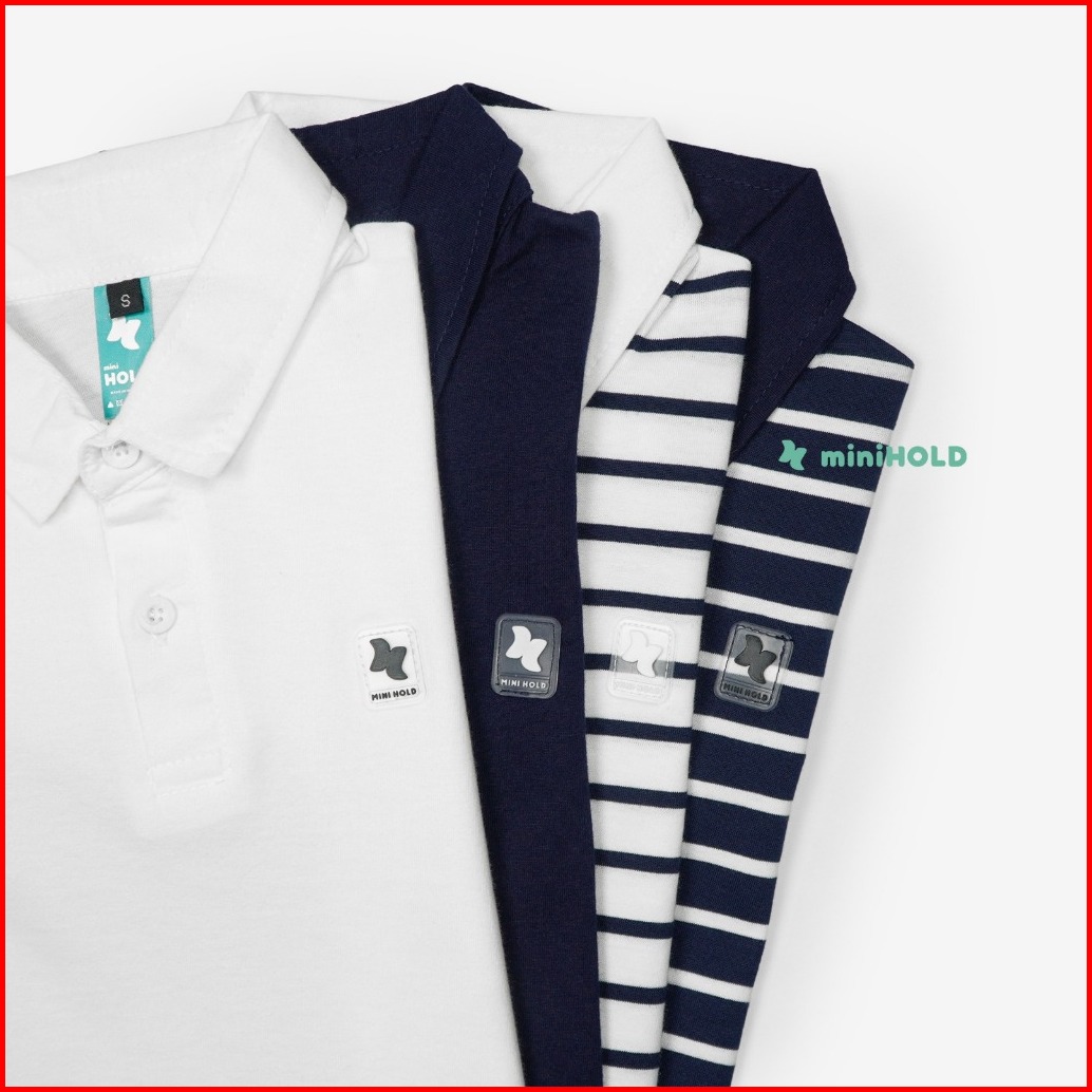 Minihold Kaos Kerah Lengan Panjang Salur Dan Kemeja Lengan Panjag Polos Cotton Combed 30s Anak Usia 1-12 Tahun