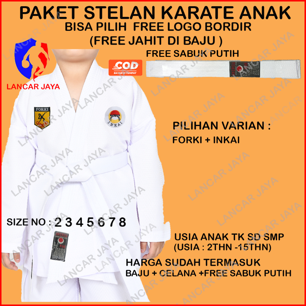 Baju Karate Anak Free Logo Bebas Pilih Sabuk Putih -1 Stel
