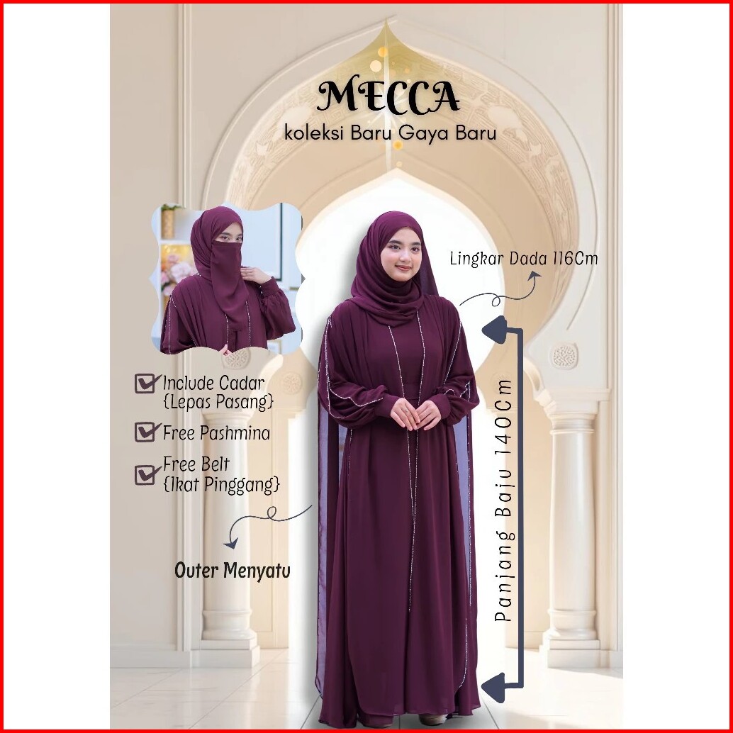 Mecca Abaya Ceruty Babydoll Set Hijab Pashmina Dan Cadar Full Payet Mewah Elegan Gamis Wanita Dewasa Kekinian Terbaru
