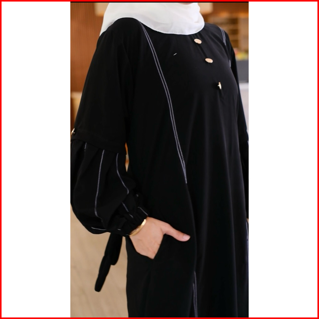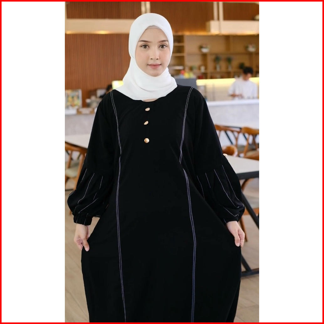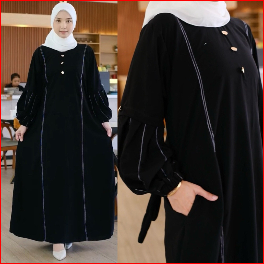 Abaya Gamis Hitam Polos Dress Maxi Jetblack Saudi Arab Dubai Dewasa Mewah Tangan Balon