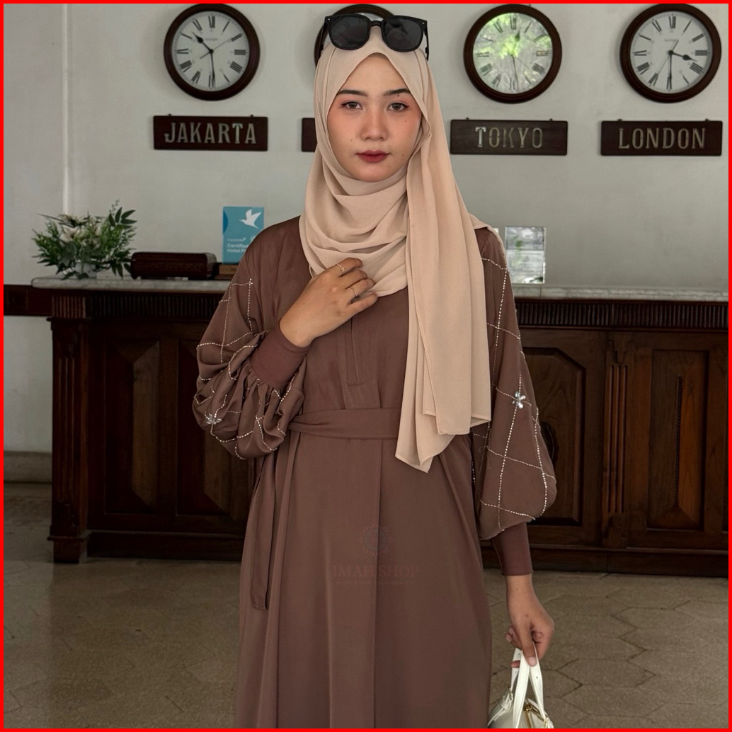 Imah Shop Zaheera Abaya Hitam Turkey Gamis Syari Muslimah Bahan Fursan Kombinasi Mata Swarovski
