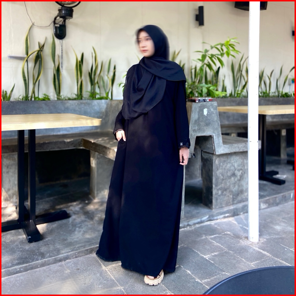 Abaya Lace Medina Gamis Umroh Bahan Jetblack Fortaleza Anti-uv