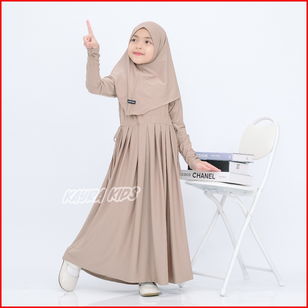 Gamis Abaya Anak Inara Serut Pinggang Usia 0-9 Tahun Bahan Jersey Lembut Dan Adem Free Hijab Muslim Panjang Nyaman