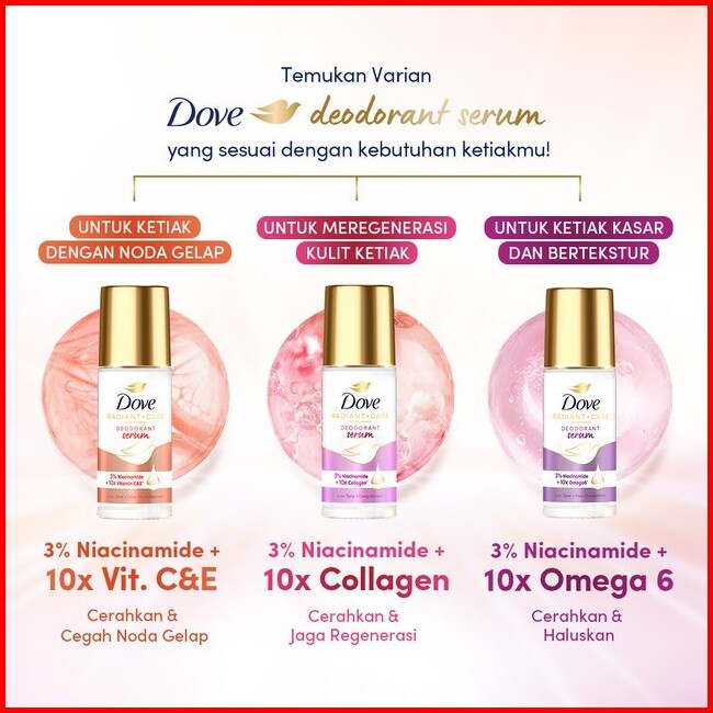 Dove Deodorant Serum Roll On 3 Niacinamide 10x Vitamin C E Cerahkan Dan Cegah Noda Gelap Ketiak 45ml