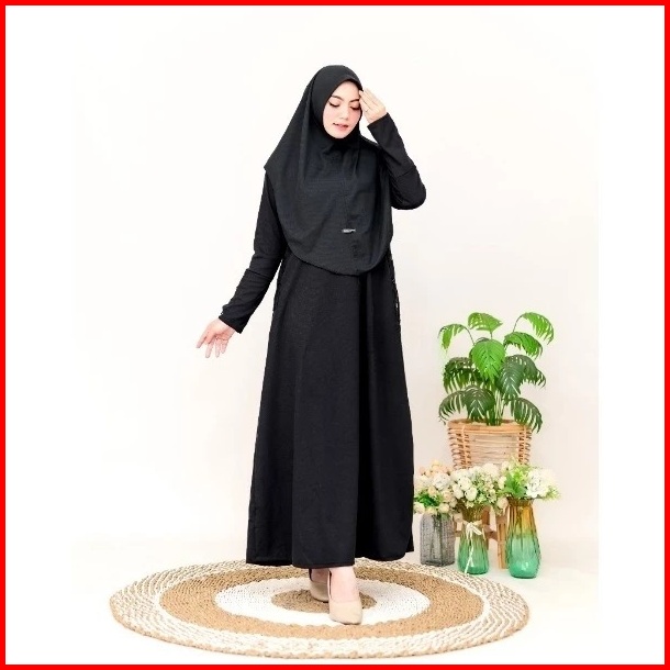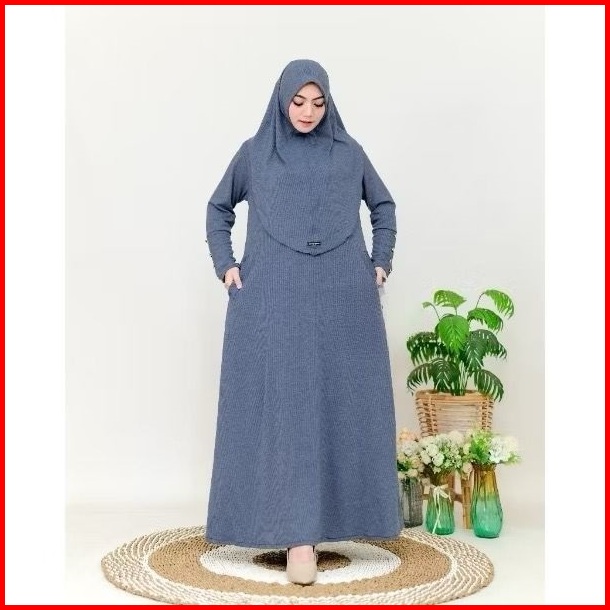 Keyra Dress Batwing Button Gamis Set Hijab Bahan Knit Premium Casual Simpel Panjang Muslim Kekinian