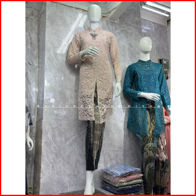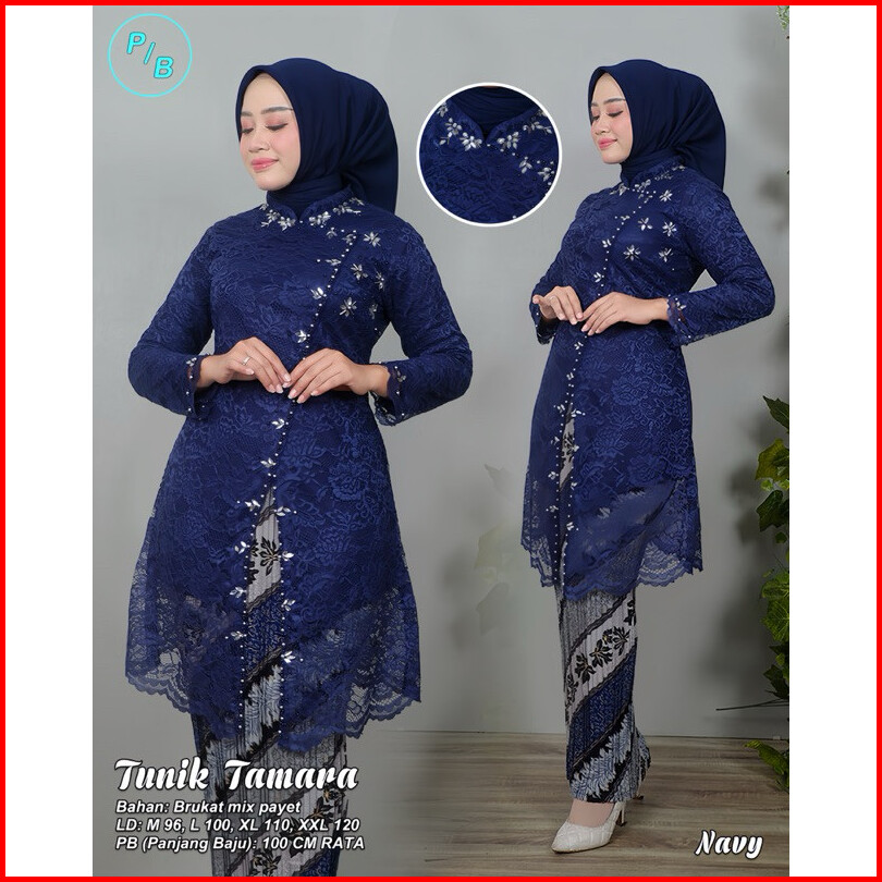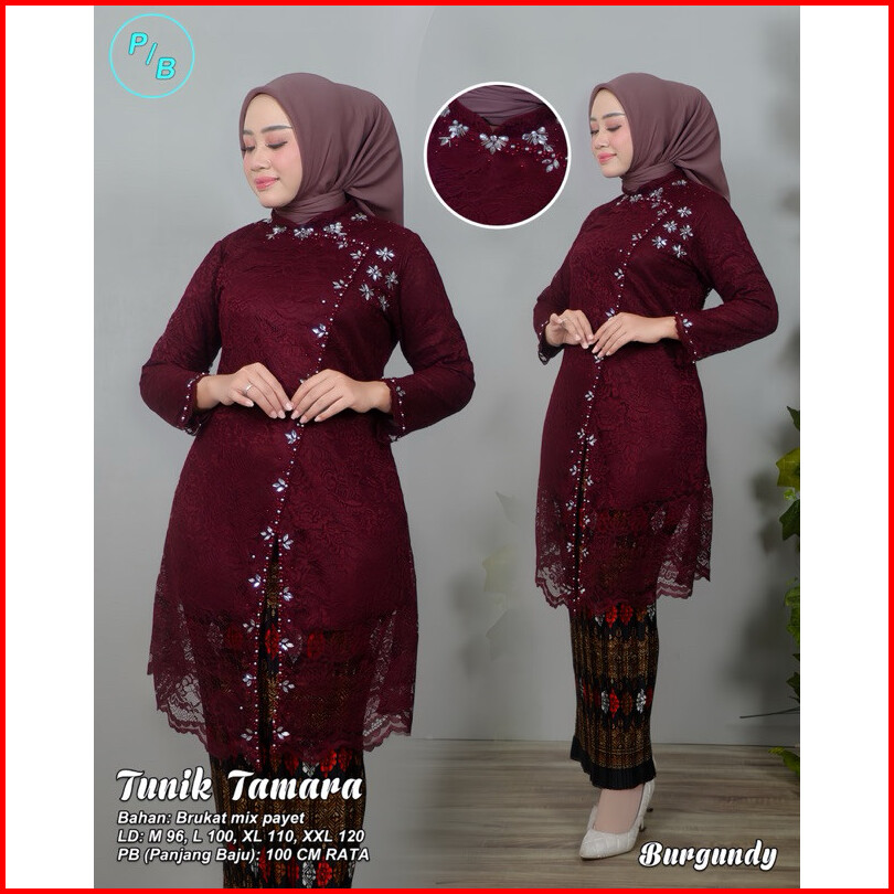 Hameedah - Kebaya Tunik Brukat Tamara Payet Set Rok Plisket Batik Baju Kondangan Modern