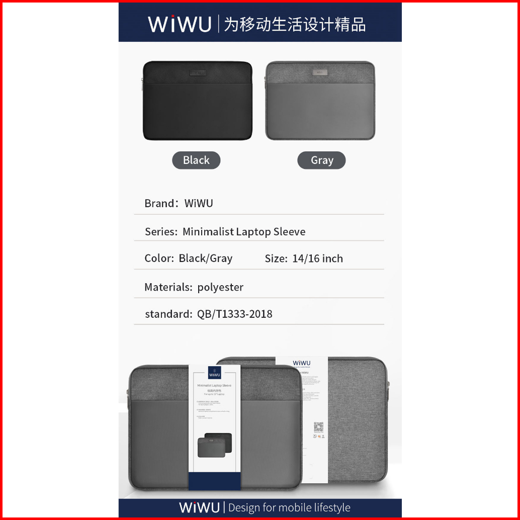 Laptop Sleeve Wiwu Minimalist 14 15.6 For Macbook Notebook Protective Bag