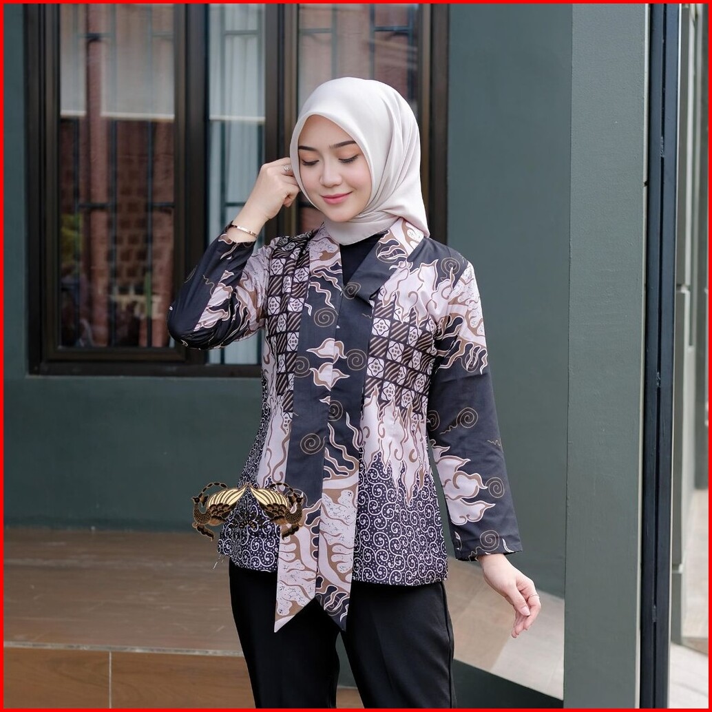 Batikdo.id Atasan Baju Kebaya Batik Wanita Modern Lengan Panjang Kemeja Blouse Kerja M L Xl Xxl