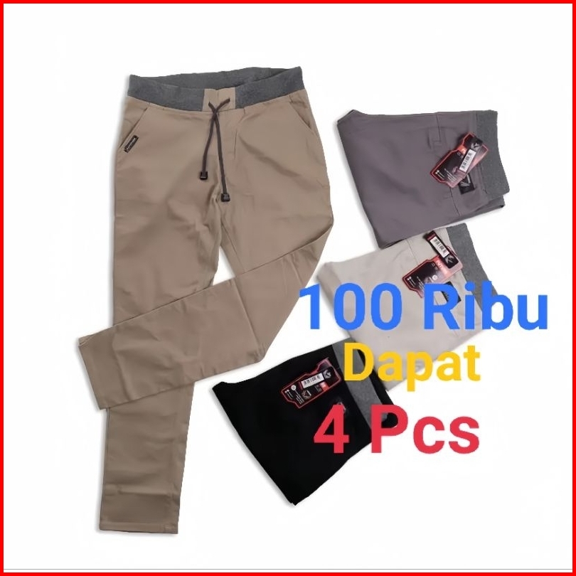 Promo Paket 100k 4pcs Celana Chinos Panjang Dewasa Santai Katun Premium