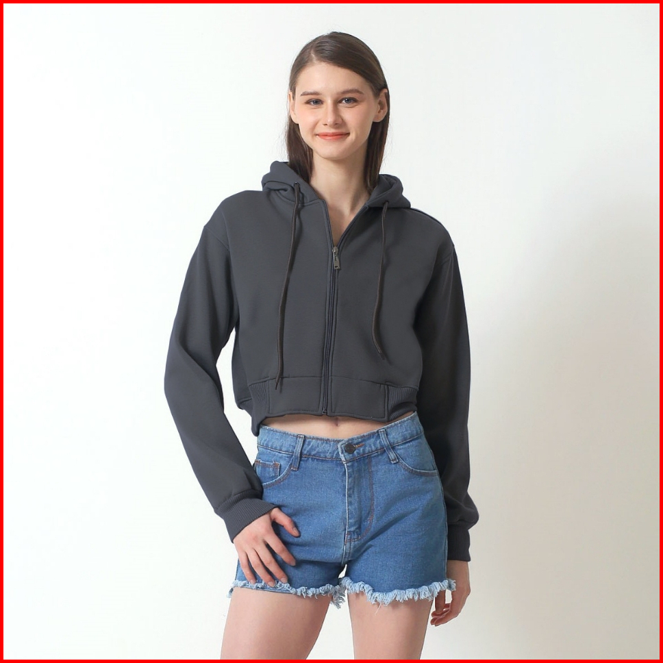 Oblo Crop Hoodie Jacket - Jaket Wanita Hoodie Crop Zipper