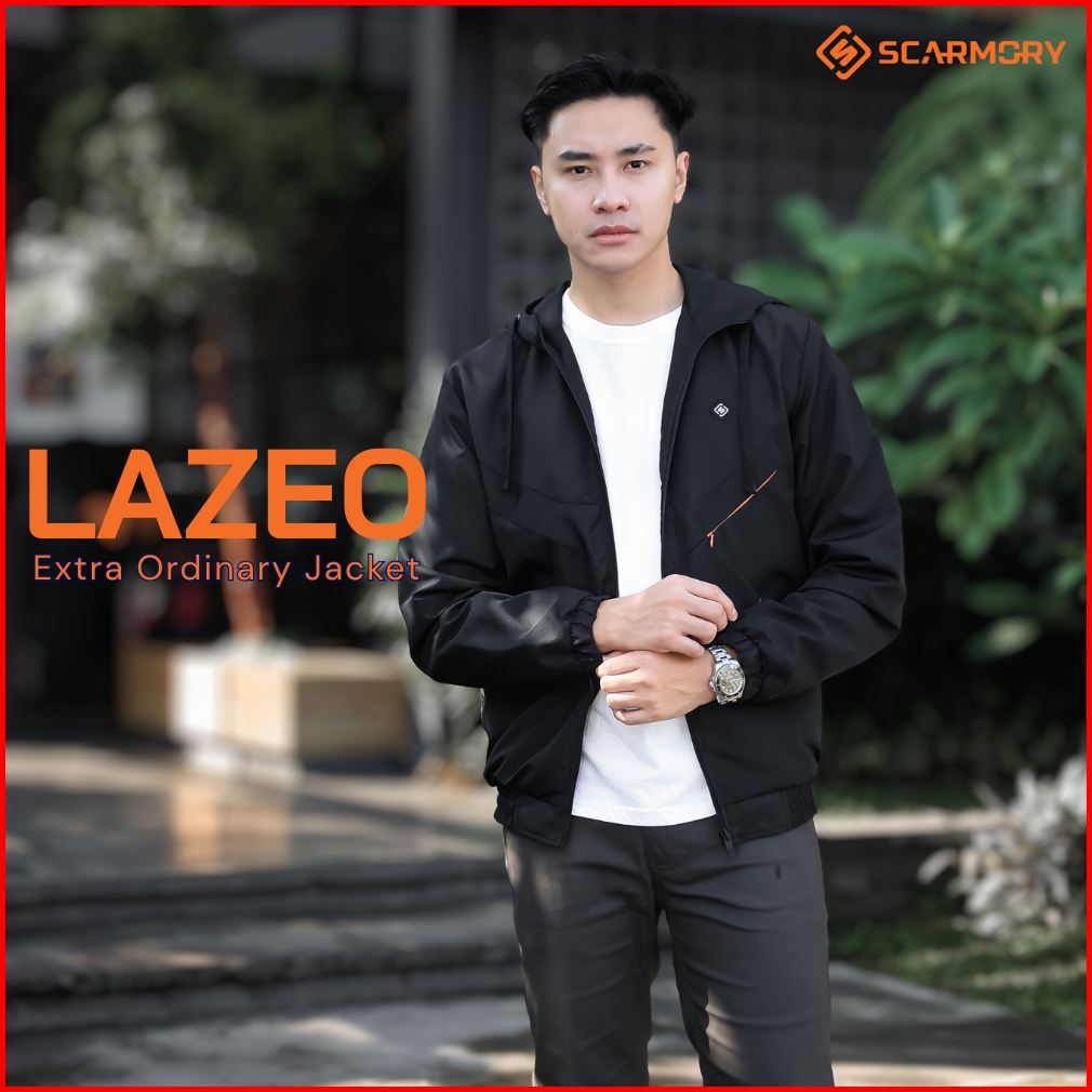 Scarmory Jaket Windproof Lazeo Jacket Bomber Motor Pria Navy