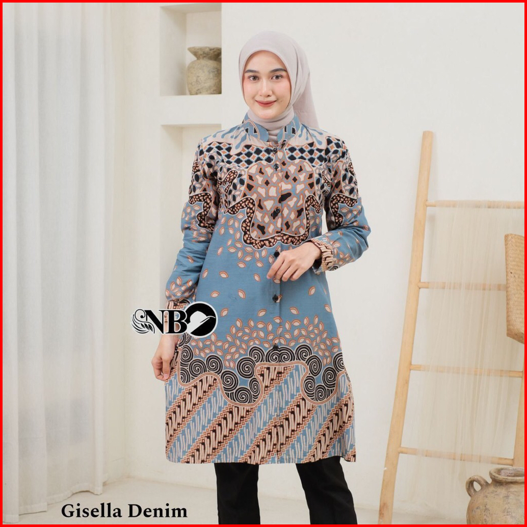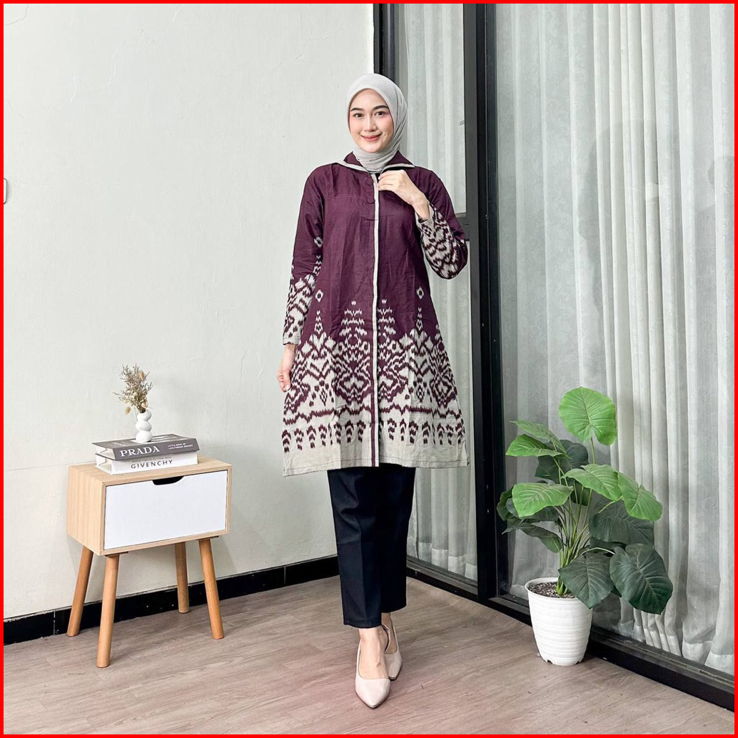 Tunik Batik Atasan Wanita Baju Batik Modern Lengan Panjang Seragam Kantor