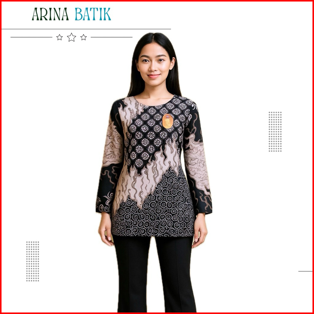 Arina Batik Atasan Blouse Wanita Lengan Panjang Terbaru Modern