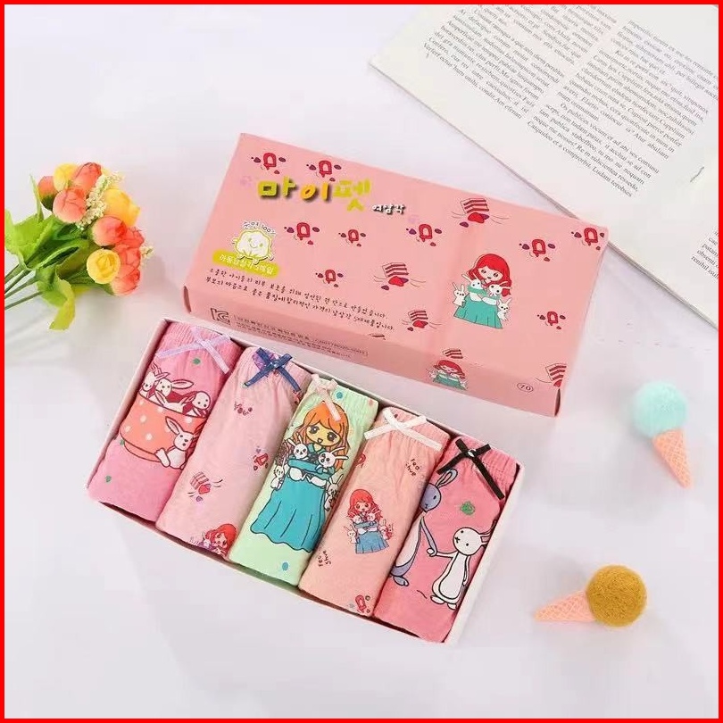Celana Dalam Anak Segitiga Perempuan Cewek Panties Katun Import 5pcs B