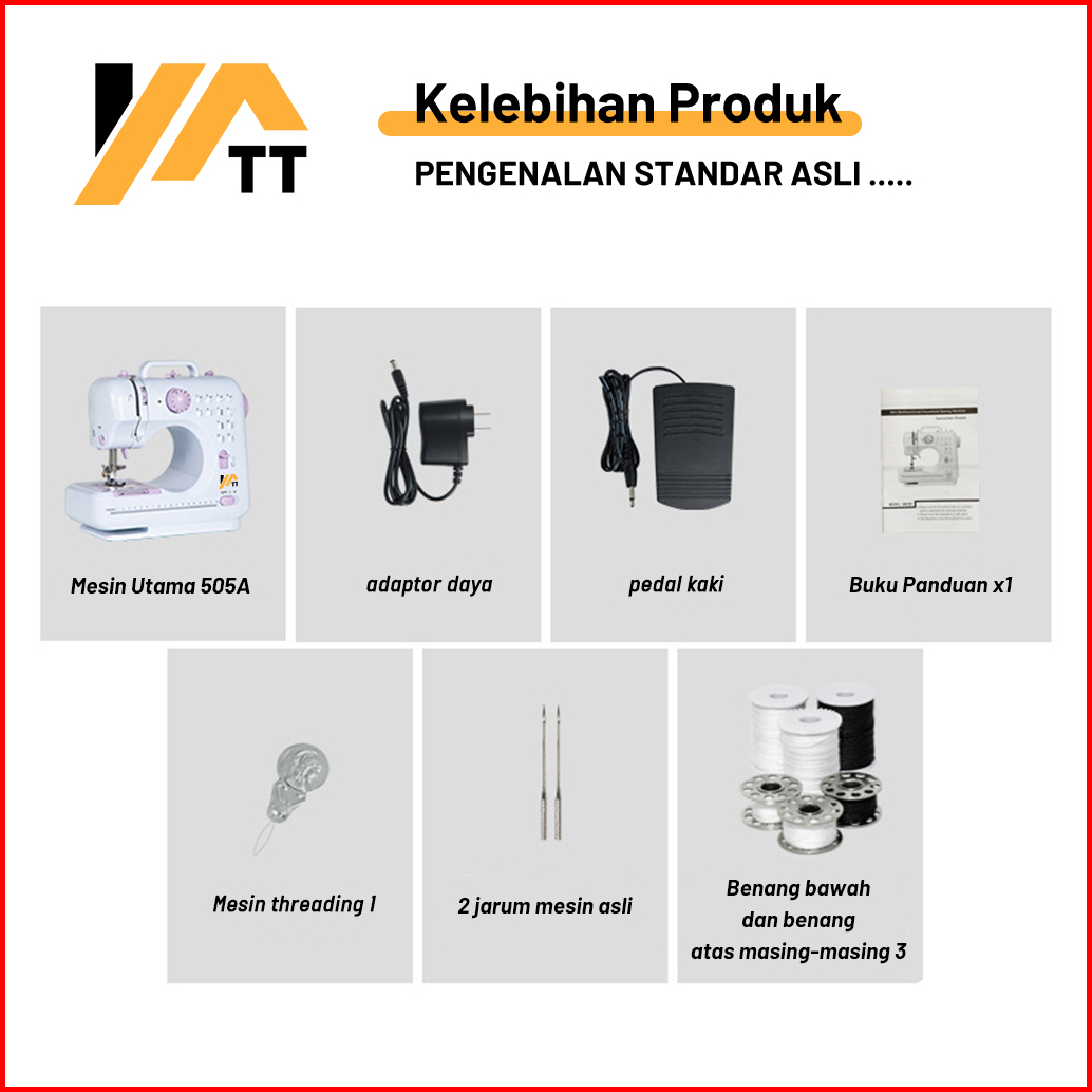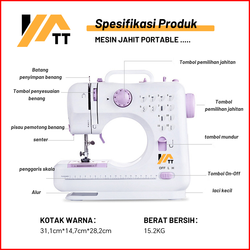 Yatt Mesin Jahit Mini Portabel 505a 12 Stitch Pola Mesin Jahit Listrik Pakaian Mesin Jahit Led