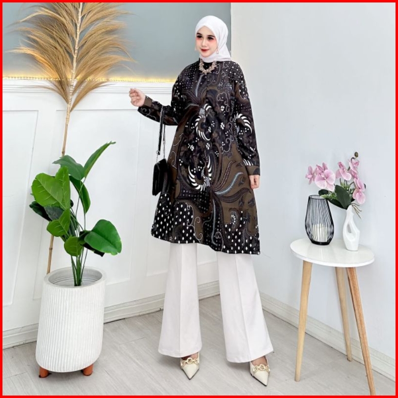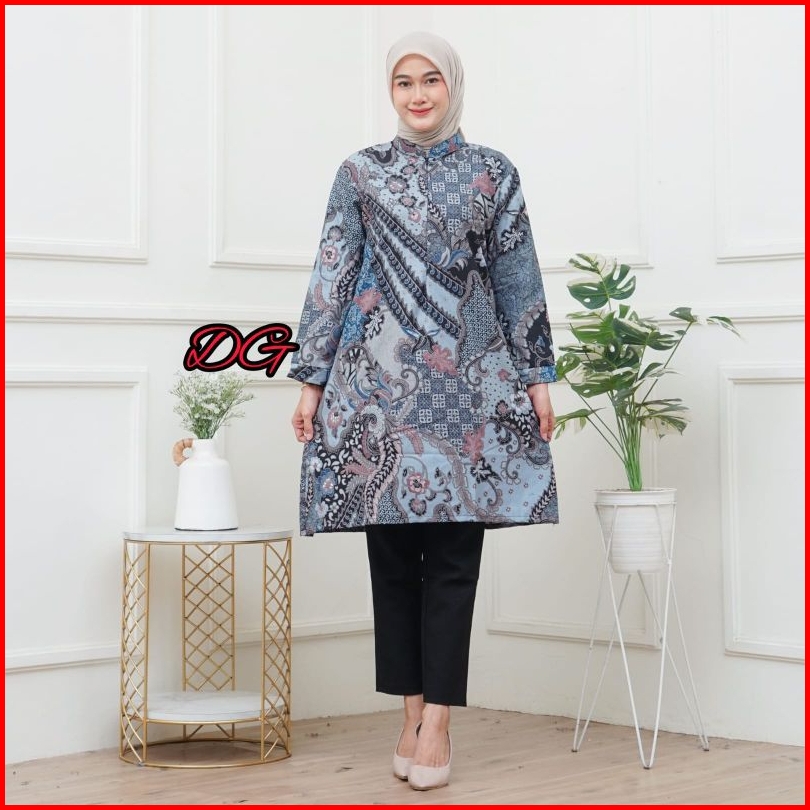 Tunik Batik Busui Termurah Seragam Guru Kantor Pengajian Kondangan Blous Atasan Wanita Lengan Panjang Modern Terbaru Tun