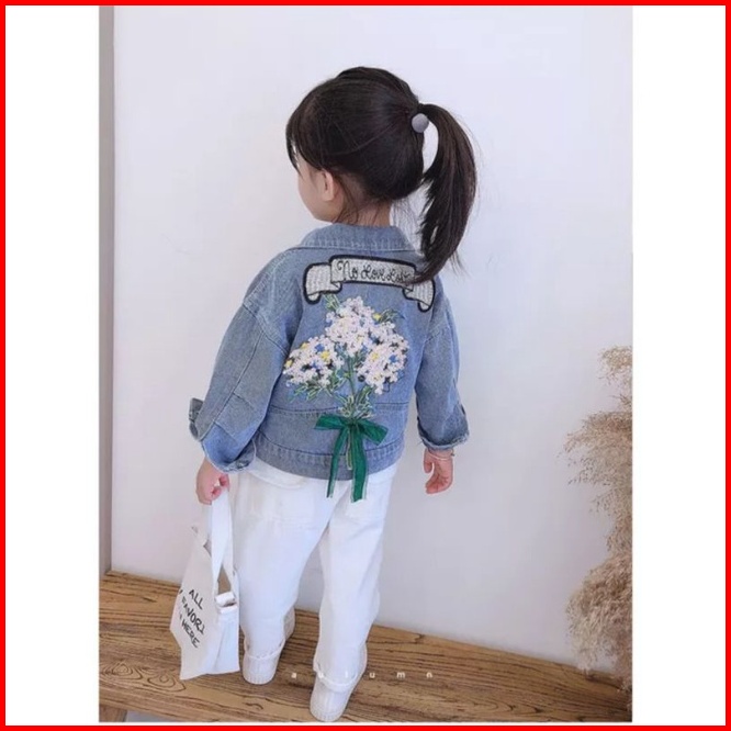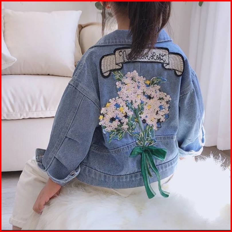 Jaket Jeans Anak Dan Dewasa Bordir Flower Usia Anak 2th-11th Model Terbaru