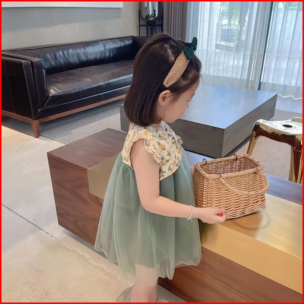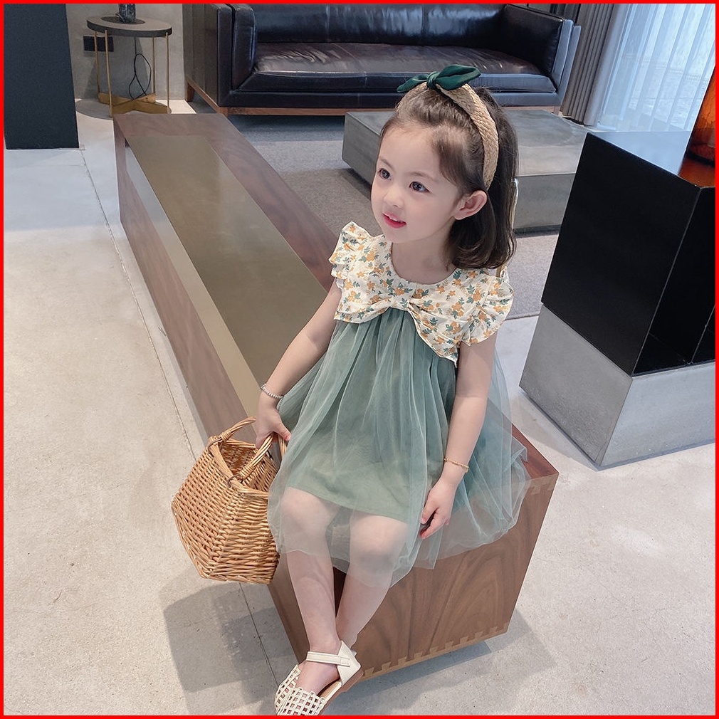 Haasya Kids 1-6 Tahun Gaun Bayi Musim Panas Berusia Baru Harta Karun Wanita Baru Dihancurkan Rok Lengan Lengan Gadis Puf