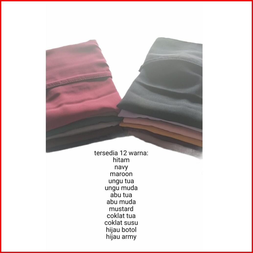 Hitam, Marun, Navy, Hijau Botol, Hijau Lumut Armi, Ungu Muda, Ungu Tua, Dusty Pink, Mustard, Coklat Susu, Cokelat Tua, Abu sedang