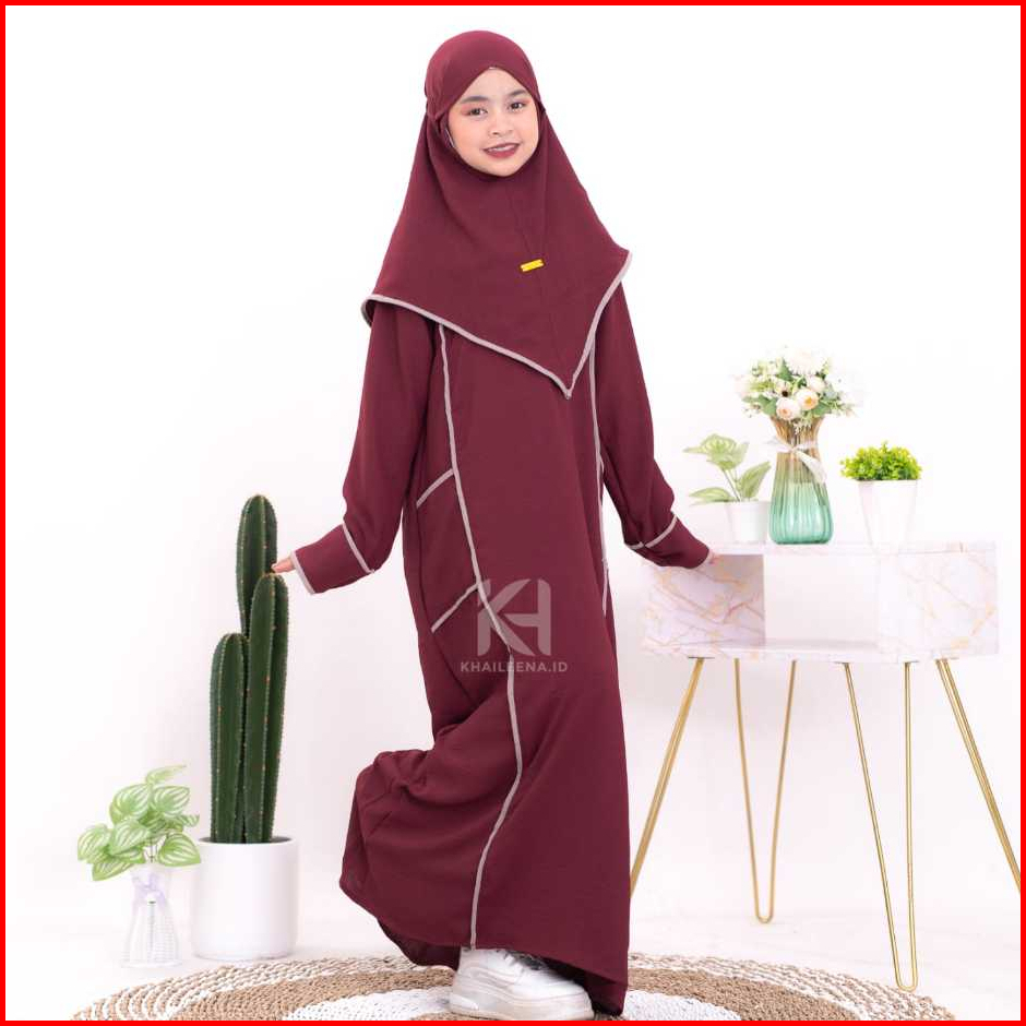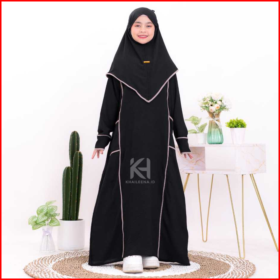 Set Abaya Khimar Gamis Anak Terbaru Khannia Bahan Crinkle Airflow Premium