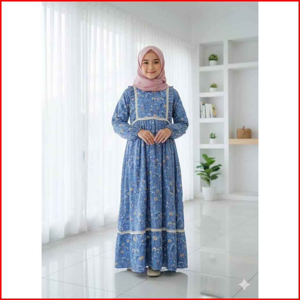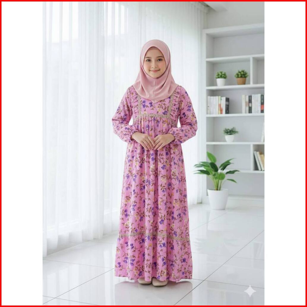 Gamis Anak Perempuan Rayon Umur 5-13 Tahun Motif Bunga Kekinian