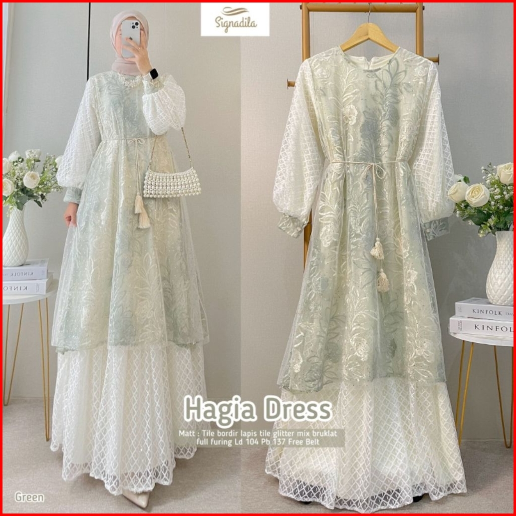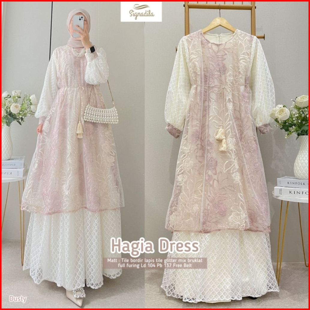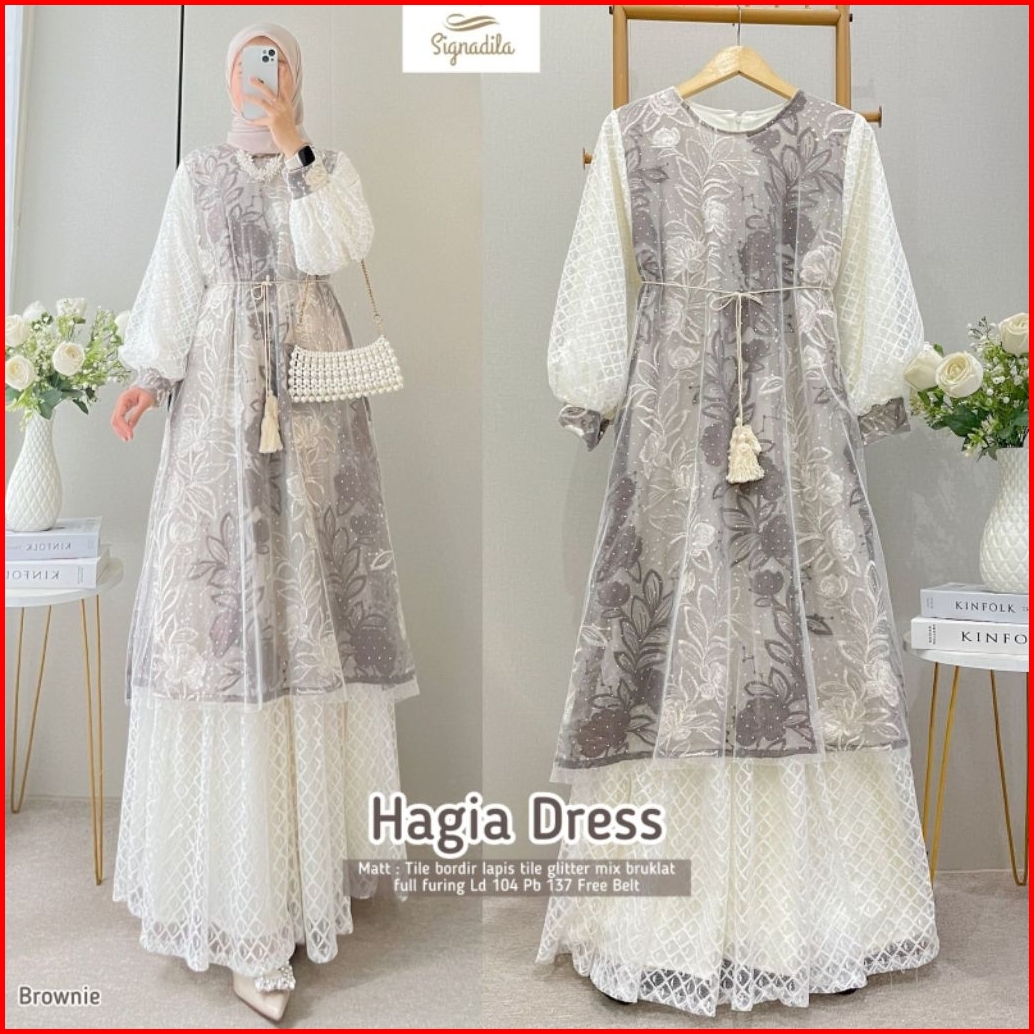 Hagia Dress Gamis Tille Bruklat Gamis Bruklat Tile Tebal Super Premium Free Ikat Pinggang Premium Kancing Gamis Tille Wh