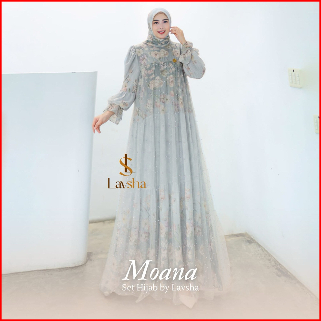 Moana Vol 2 Set Hijab Segiempat Dress Princess Mewah Elegant Wanita Muslim