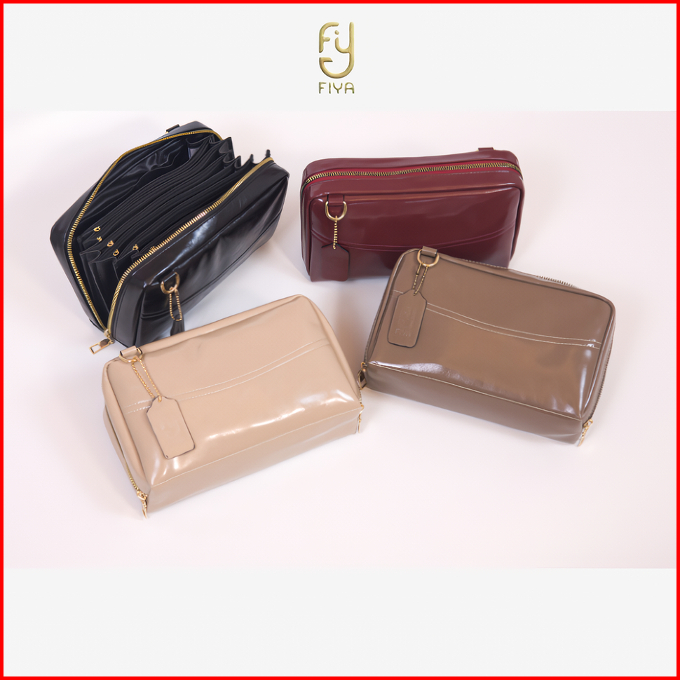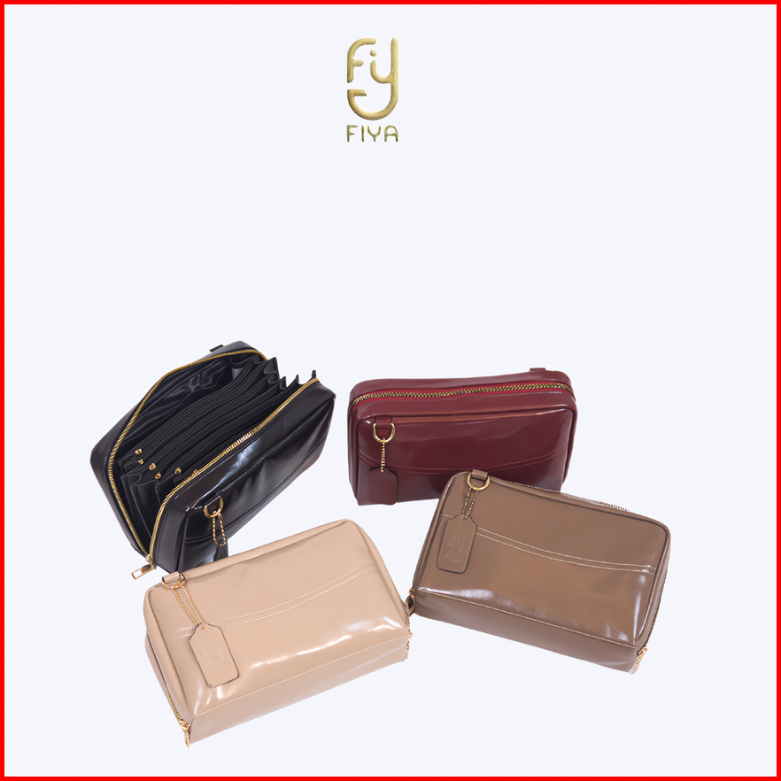 Fiya Nadeen Pouch Dompet Keuangan Bahan Glossy Free Tali Panjang Pouch Wanita Dompet Kanvas Mini
