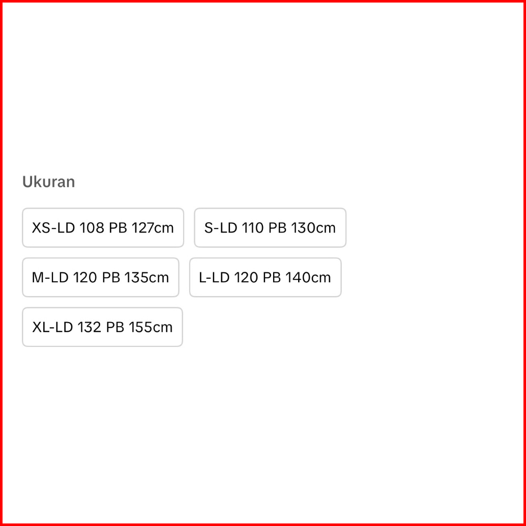 XS LD 108 PB 127, S LD 110 PB 130, M LD 120 PB 135, L LD 122 PB 140, XL LD 132 PB 155, XXL LD 130 PB 148