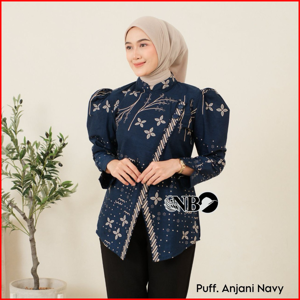 Atasan Batik Wanita Modern Lengan Panjang Batik Tunik Puf Batik Blouse Puf Batik Seragam Terbaru Batik Kantor Resmi Pest