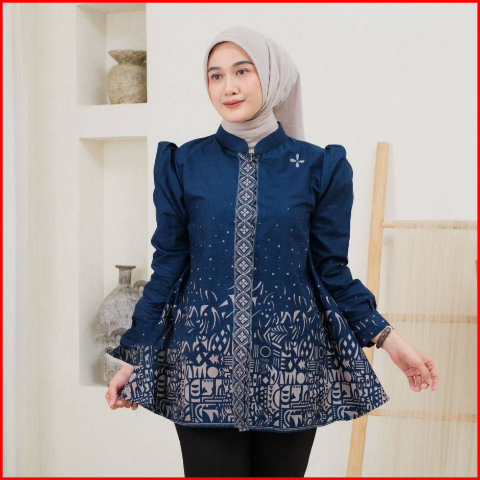 Batik Wanita Atasan Modern Seragam Kantor Kerja Kekinian Terbaru Blouse Elegan Lengan Panjang Puffy