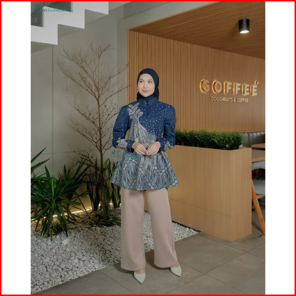 Atasan Batik Wanita Modern Lengan Panjang Puffy Blouse Batik Namara Baju Batik Kerja Modern