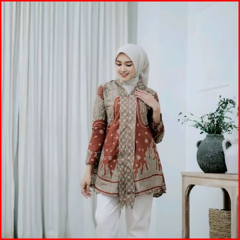 Panda Jaya - Batik Wanita Modern Atasan Wanita Terbaru Awanita Lengan Panjang Resleting Depan
