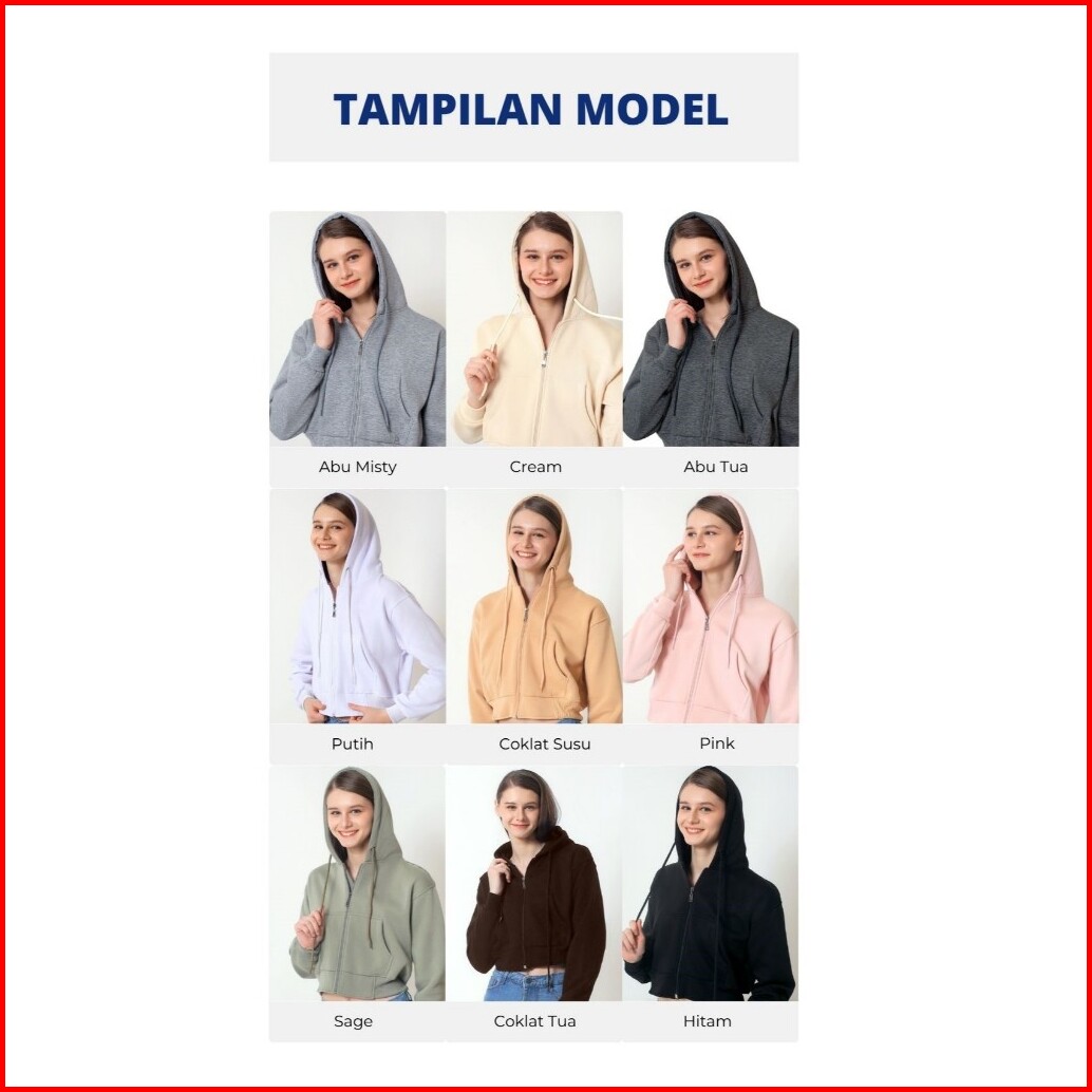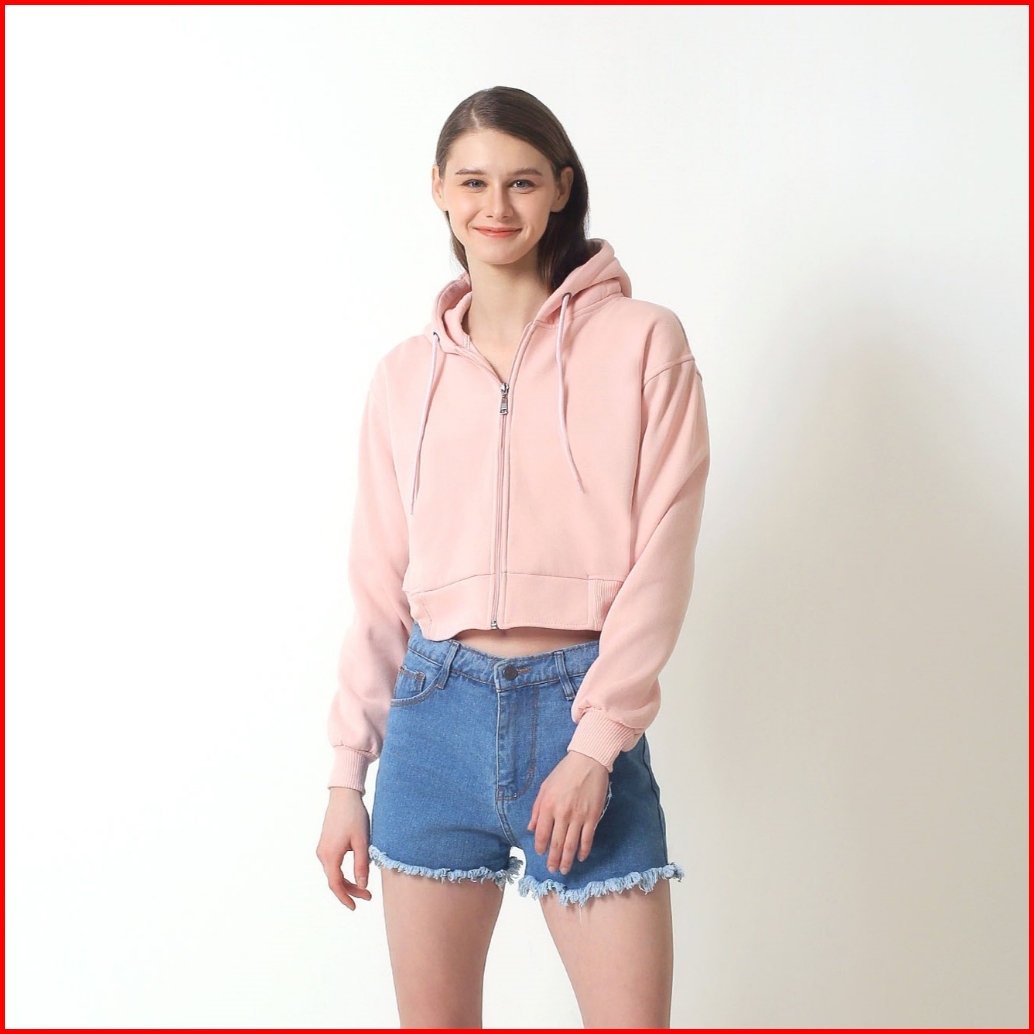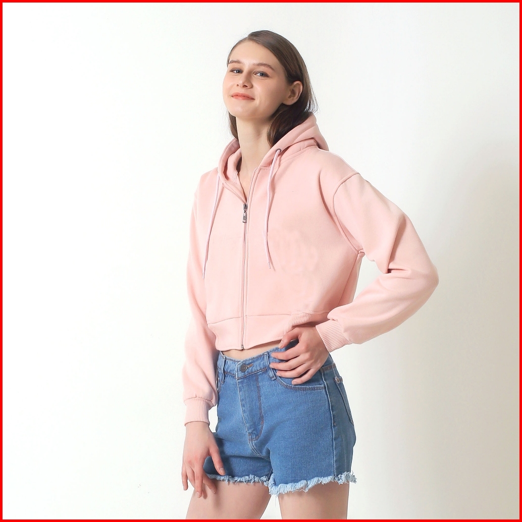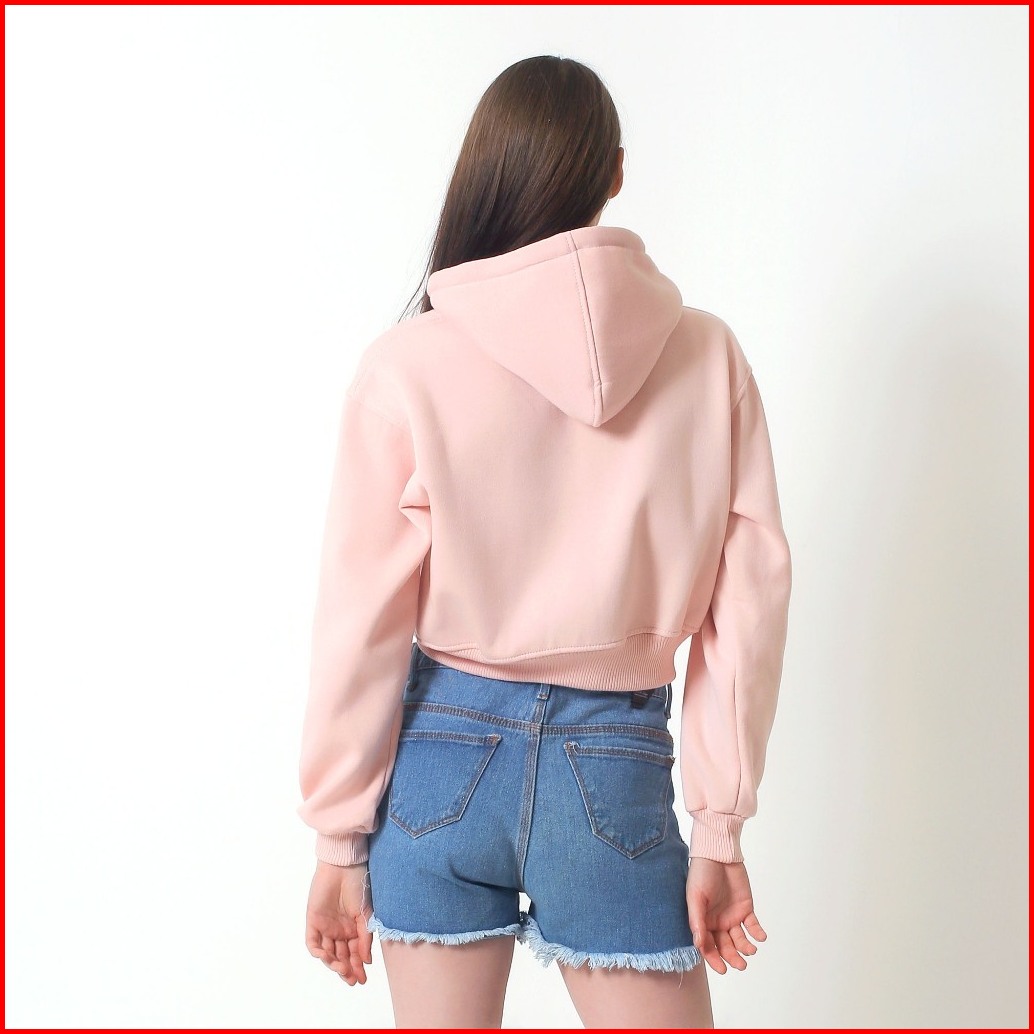 Oblo Sweater Hoodie Zipper Crop Wanita Resleting Jaket Crop Fleece Size S-xl
