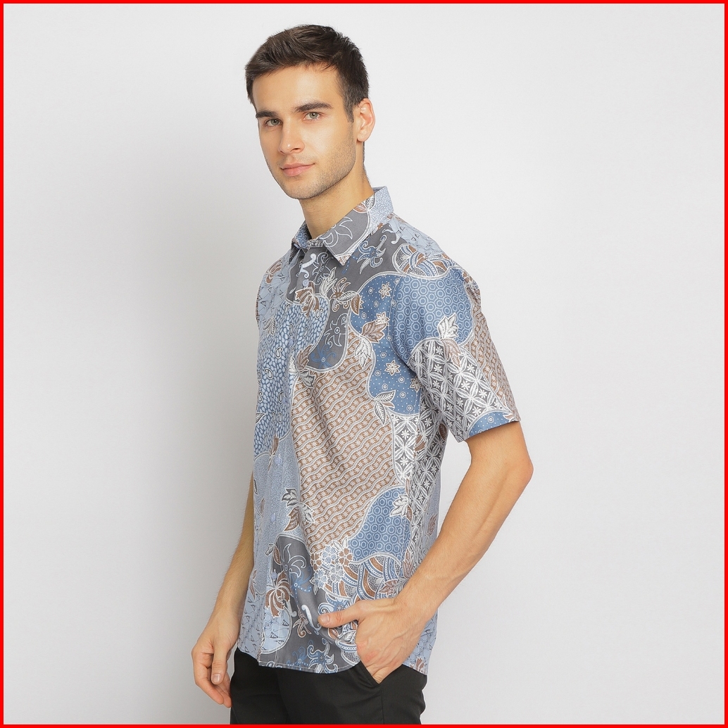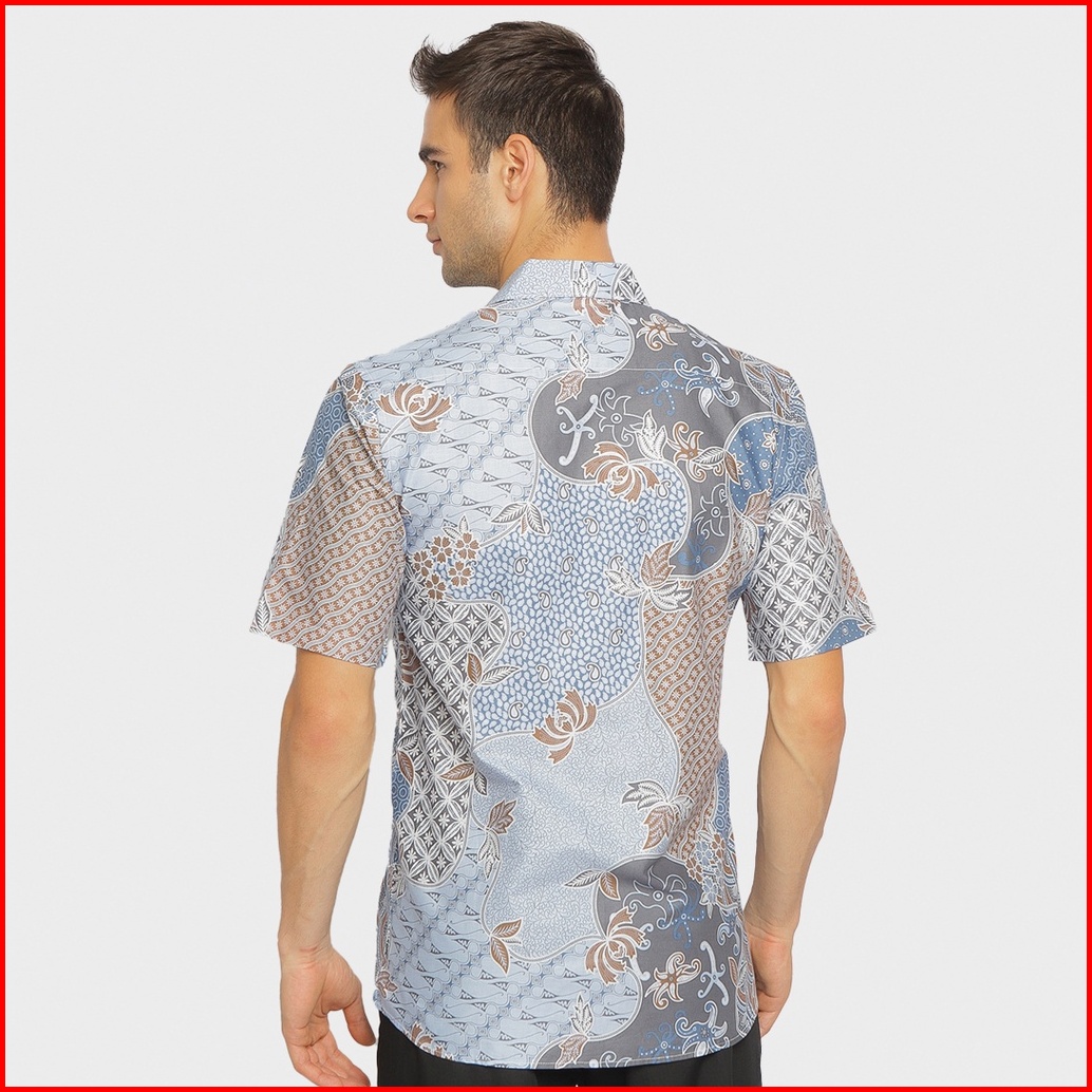 Big Sale 12.12 Jayashree - Gyan Blue Bahan Katun Premium - Kemeja Kerja Batik Pria Slimfit Lengan Pendek