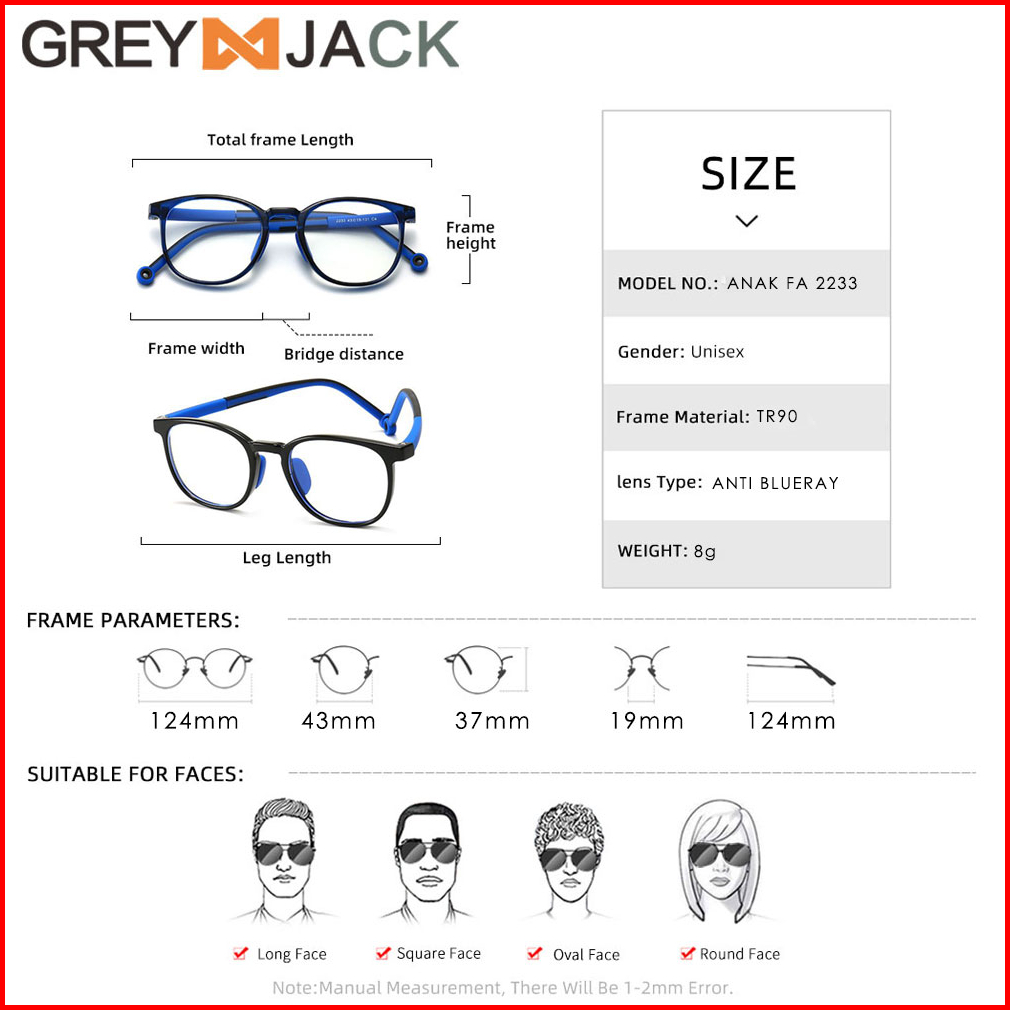 Grey Jack Kacamata Anak Laki-laki Dan Perempuan Antiradiasi Blueray Gadget Model Kotak Ringan Dan Lentur Fashionable 223