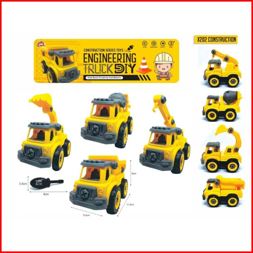 4in1 Obeng Diy Truk Engineering Construction Truck Mainan Anak Laki Laki Excavator