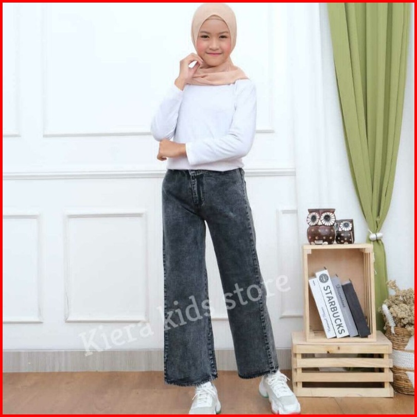 Celana Kulot Higwaist Jeans Putih Anak Usia 4-13 Tahun