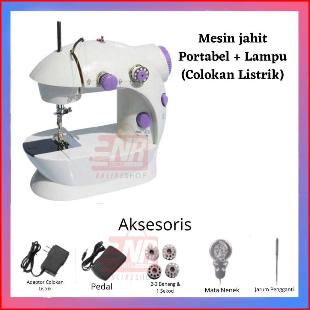 Mesin Jahit Portable Mini Type 202 Ada Lampunya Lengkap Dengan Pedal Dan Adaptor
