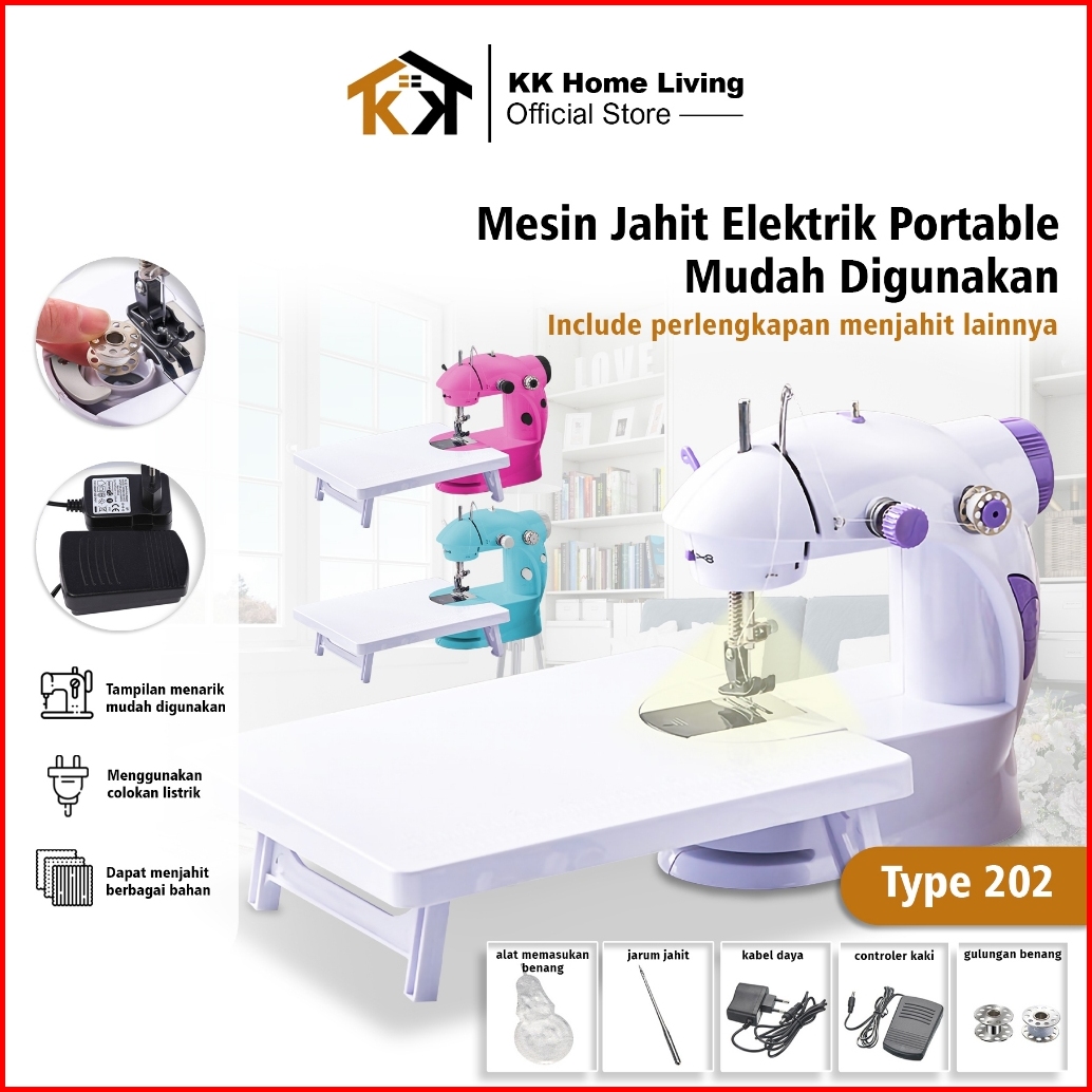 Kk Mesin Jahit Mini Portable 202a Lampu Led Kuat Rapi Multifungsi Jahit Pakaian Terbaru