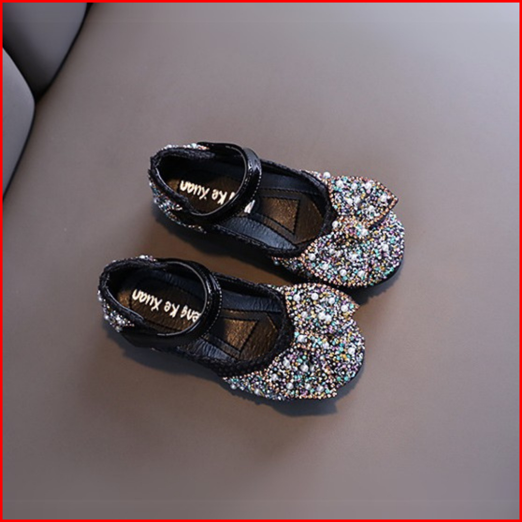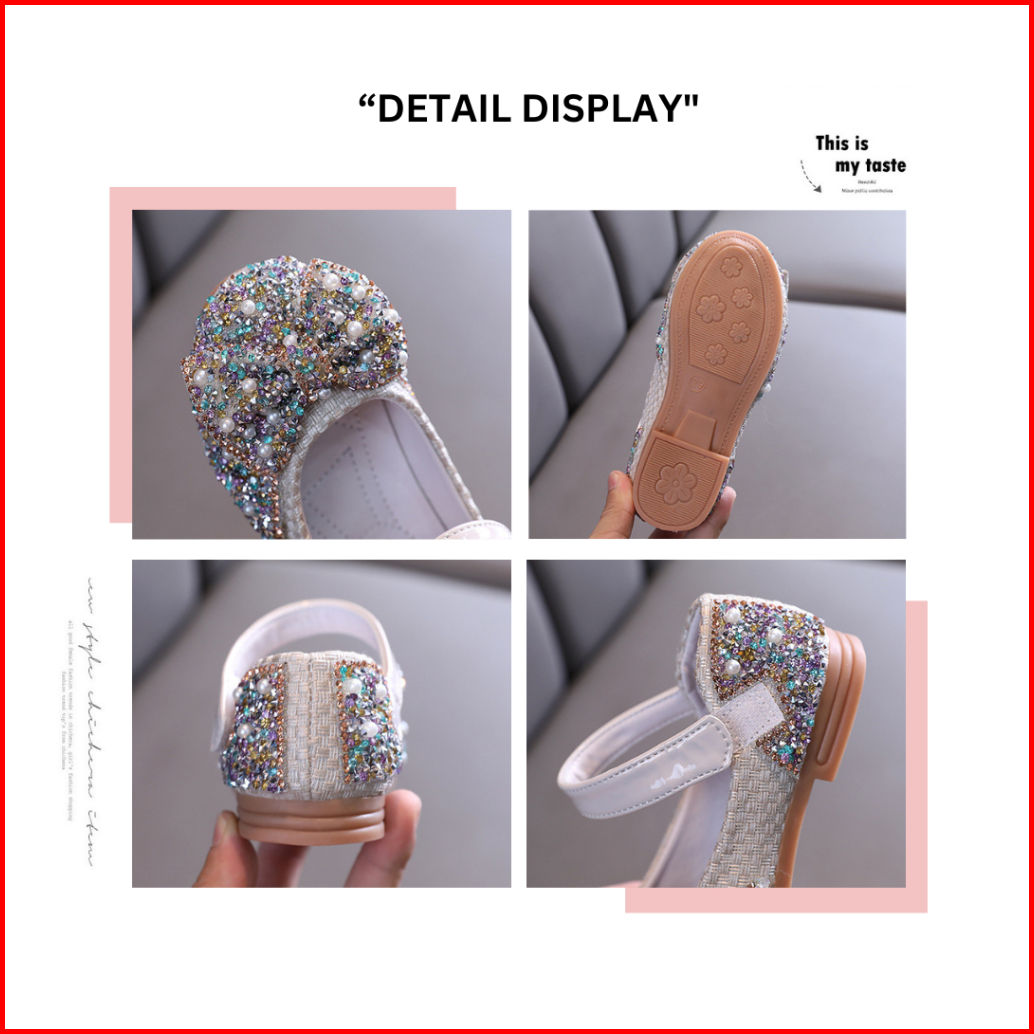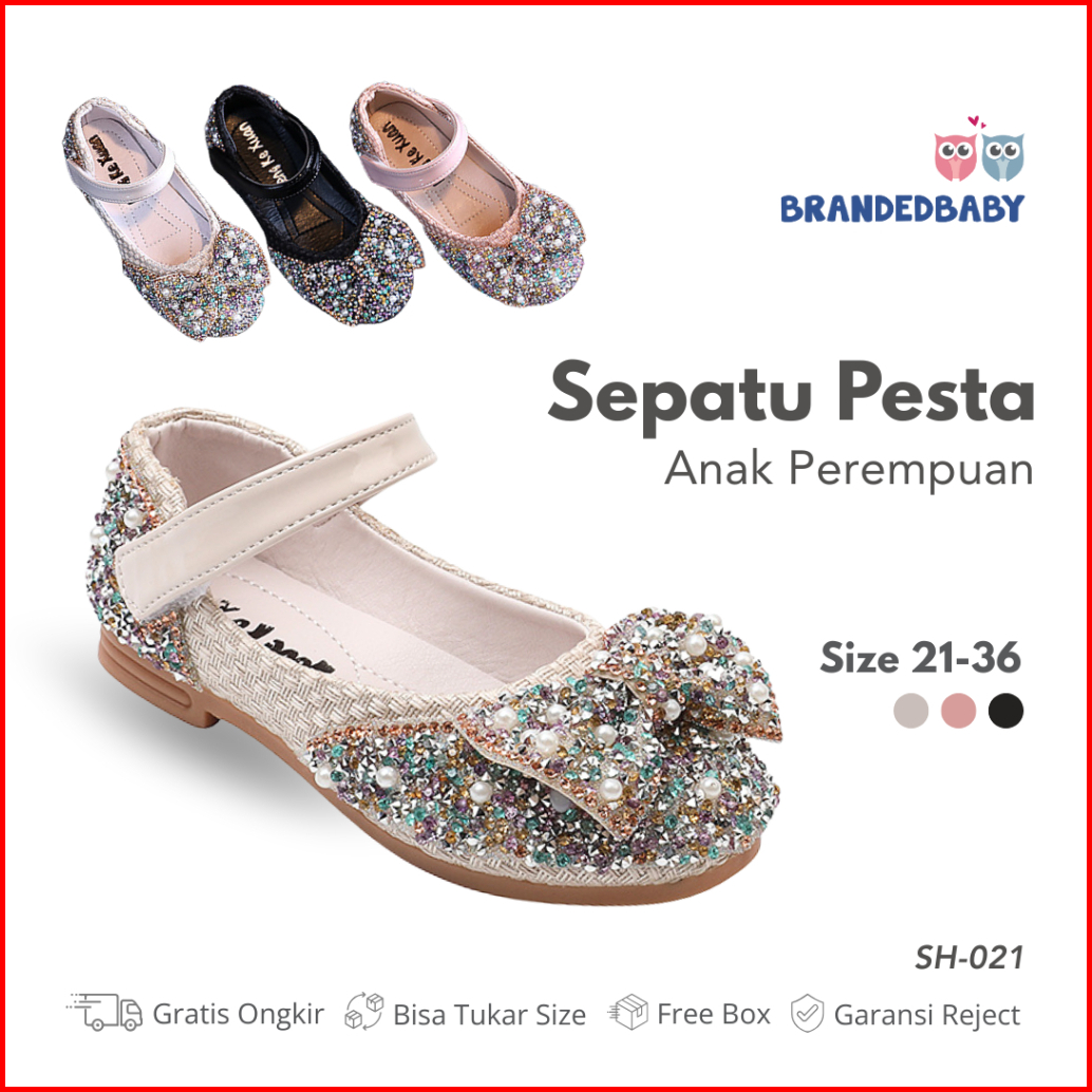 Brandedbaby 21-36 Sepatu Pesta Flat Anak Perempuan Premium Manik-manik Mutiara Pita Hitam Pink Ivory Fashion Korea Anti